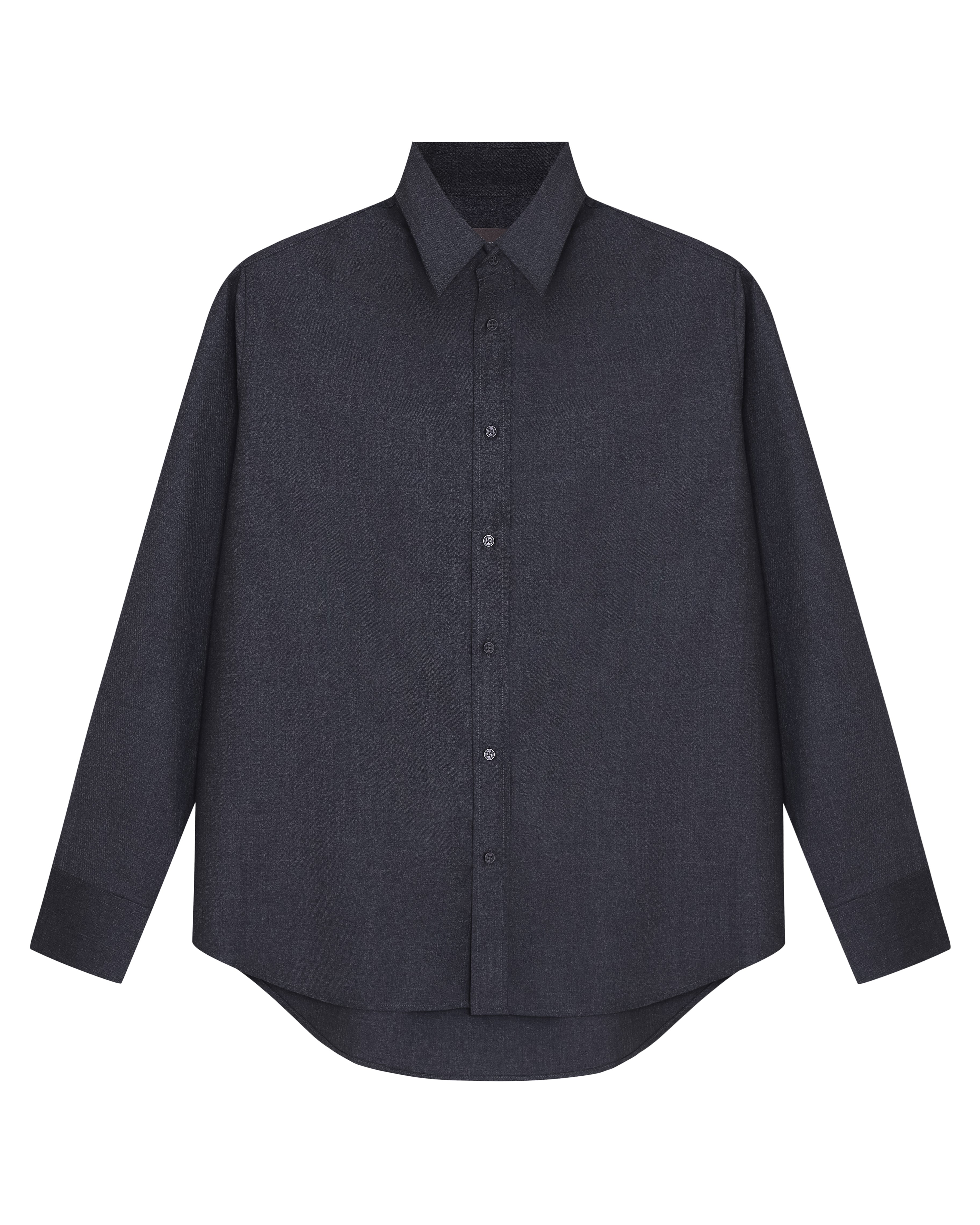 The Henri Shirt is made of wool, has a straight fit, collar with structured interlining, front closure with exclusive personalized Mondepars buttons, long sleeves, cuffs with structured interlining and double buttoning, centered pleat on the back and topstitched finish.