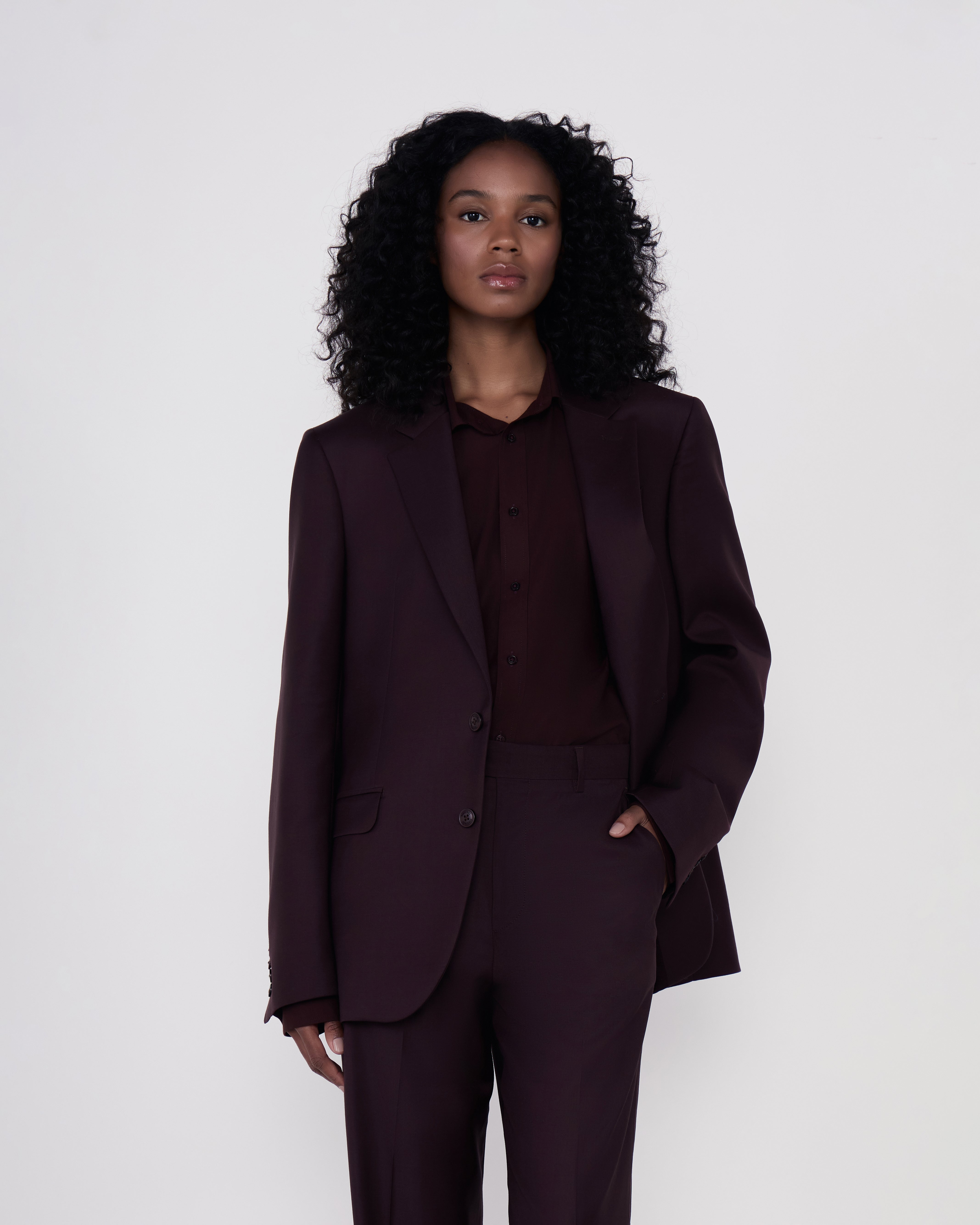 O Blazer Kai é confeccionado em lã importada, possui modelagem de alfaiataria tradicional, caimento oversize, ombreiras estruturadas, feltro de alfaiataria no interno da gola, lapelas notched, fechamento frontal por botões personalizados e caseado de olho, mangas longas com abotoamento nos punhos com abertura funcional, bolso interno de alfaiataria, bolsos externos alinhavados à mão para abertura conforme manufatura tradicional e forro embutido.