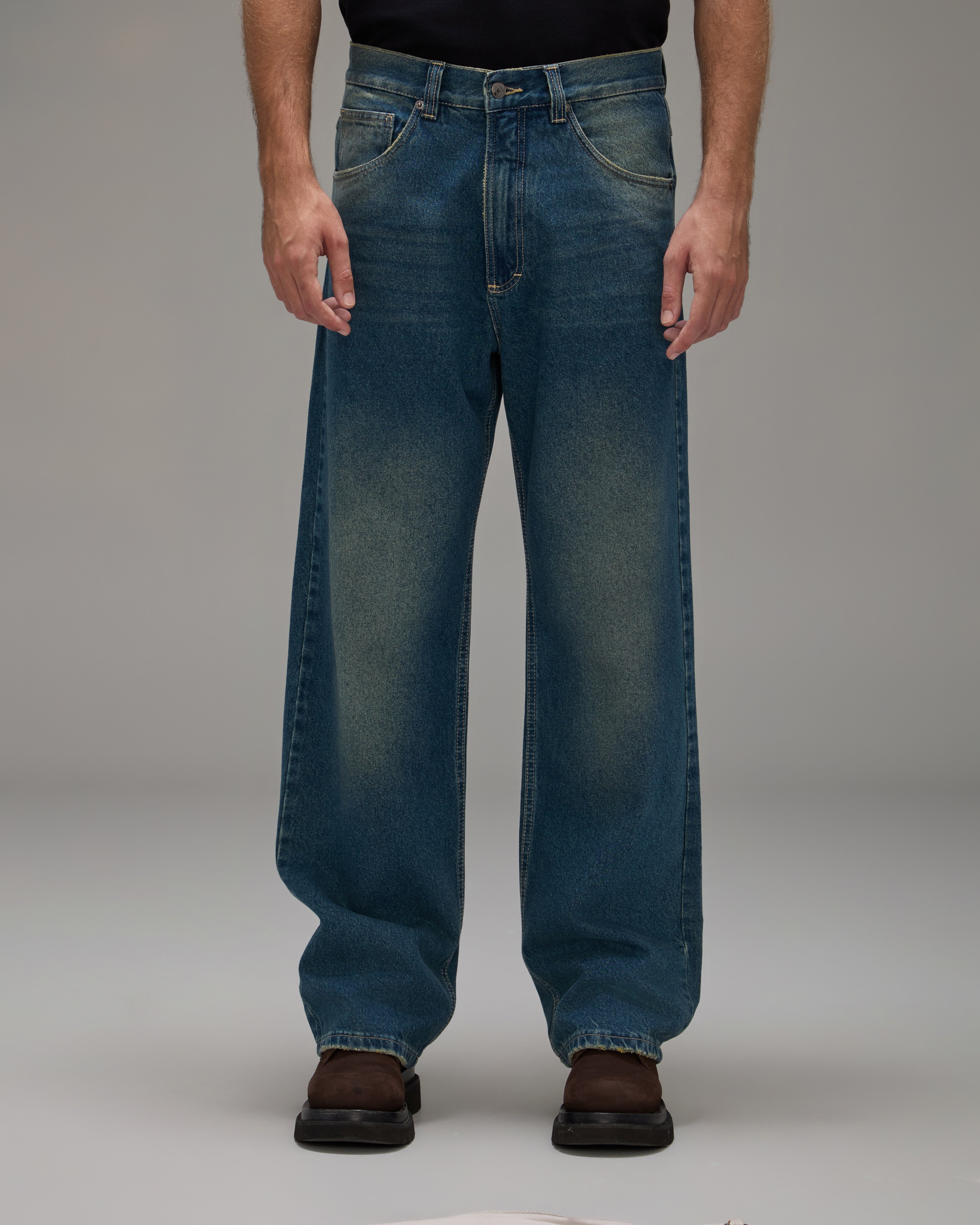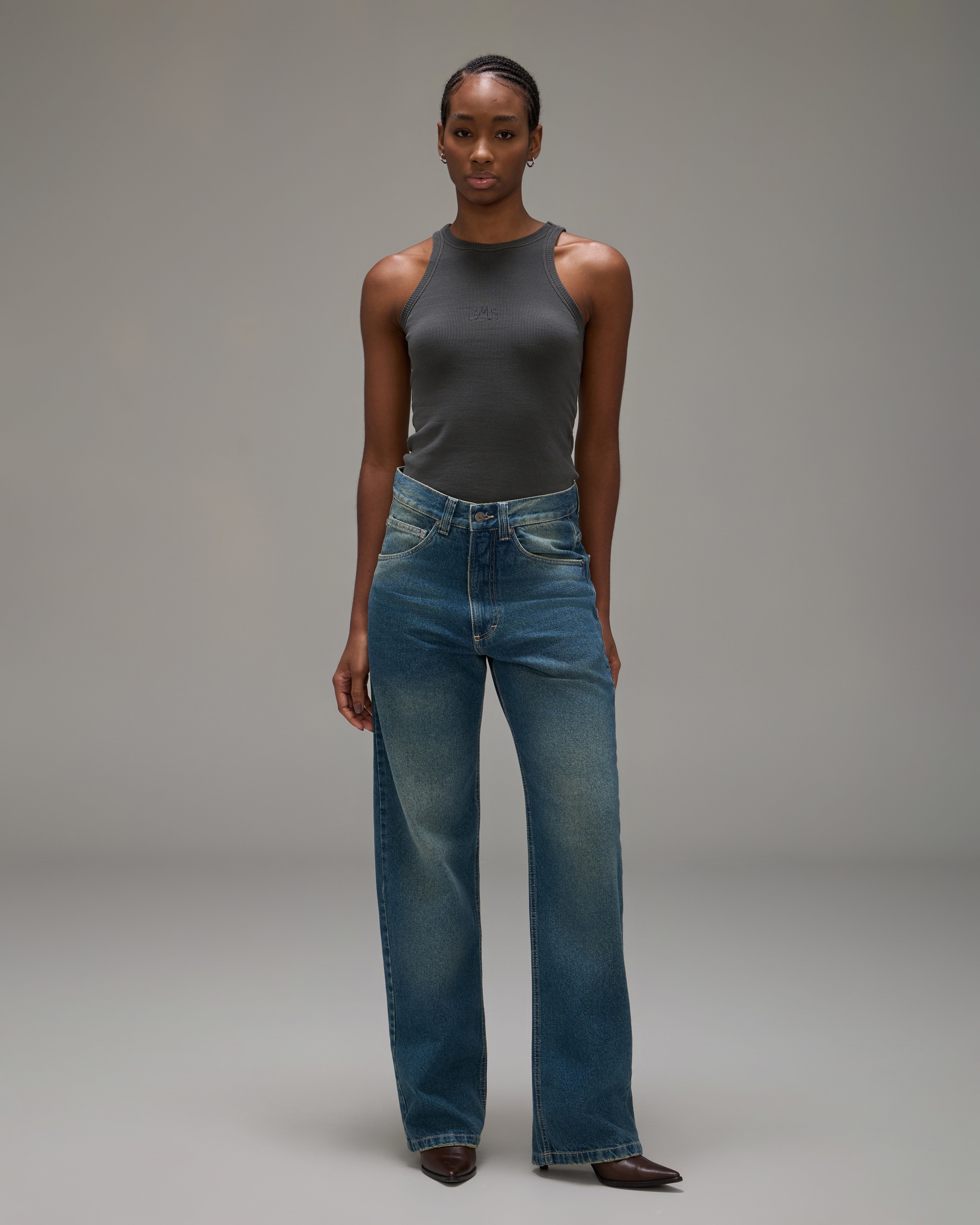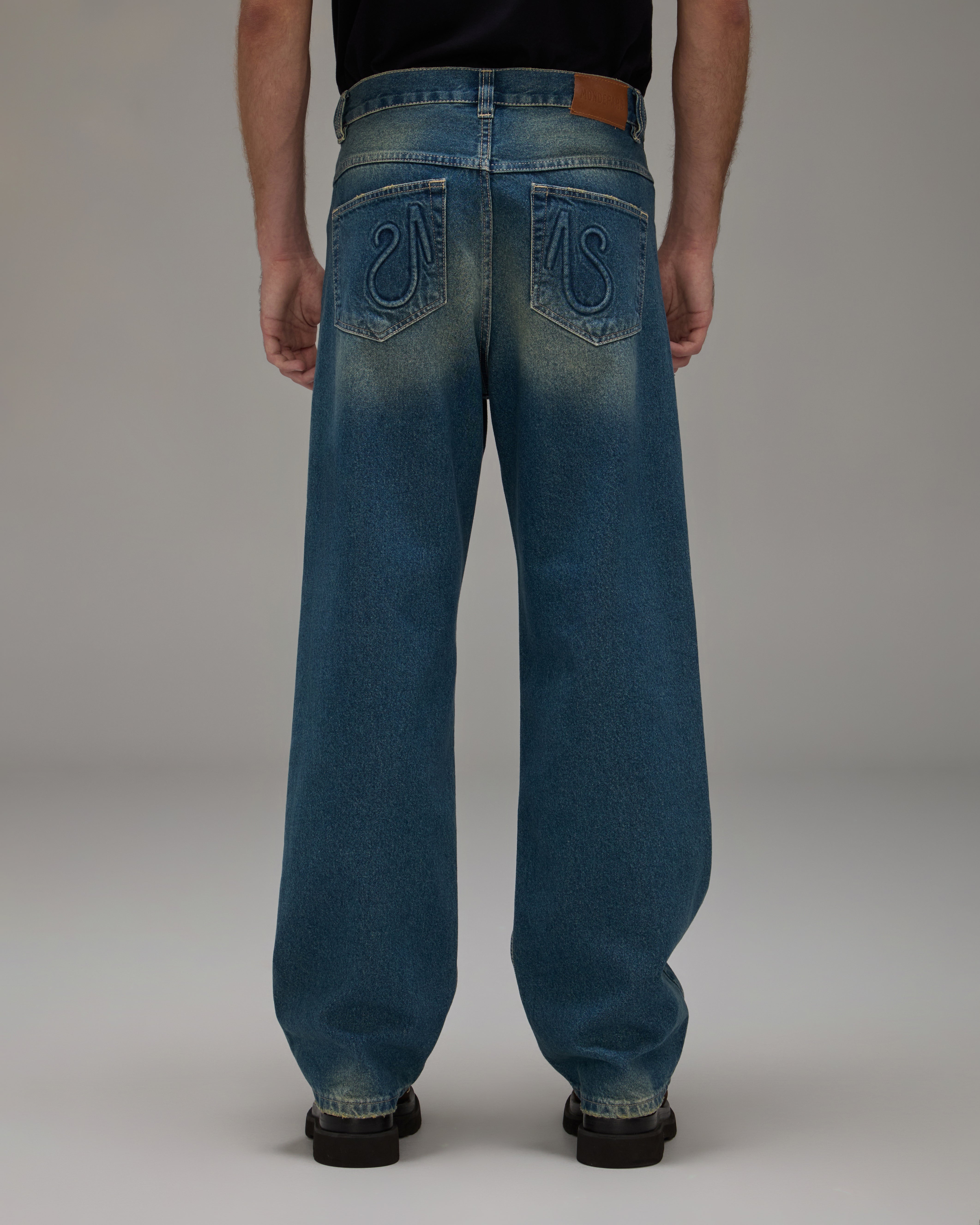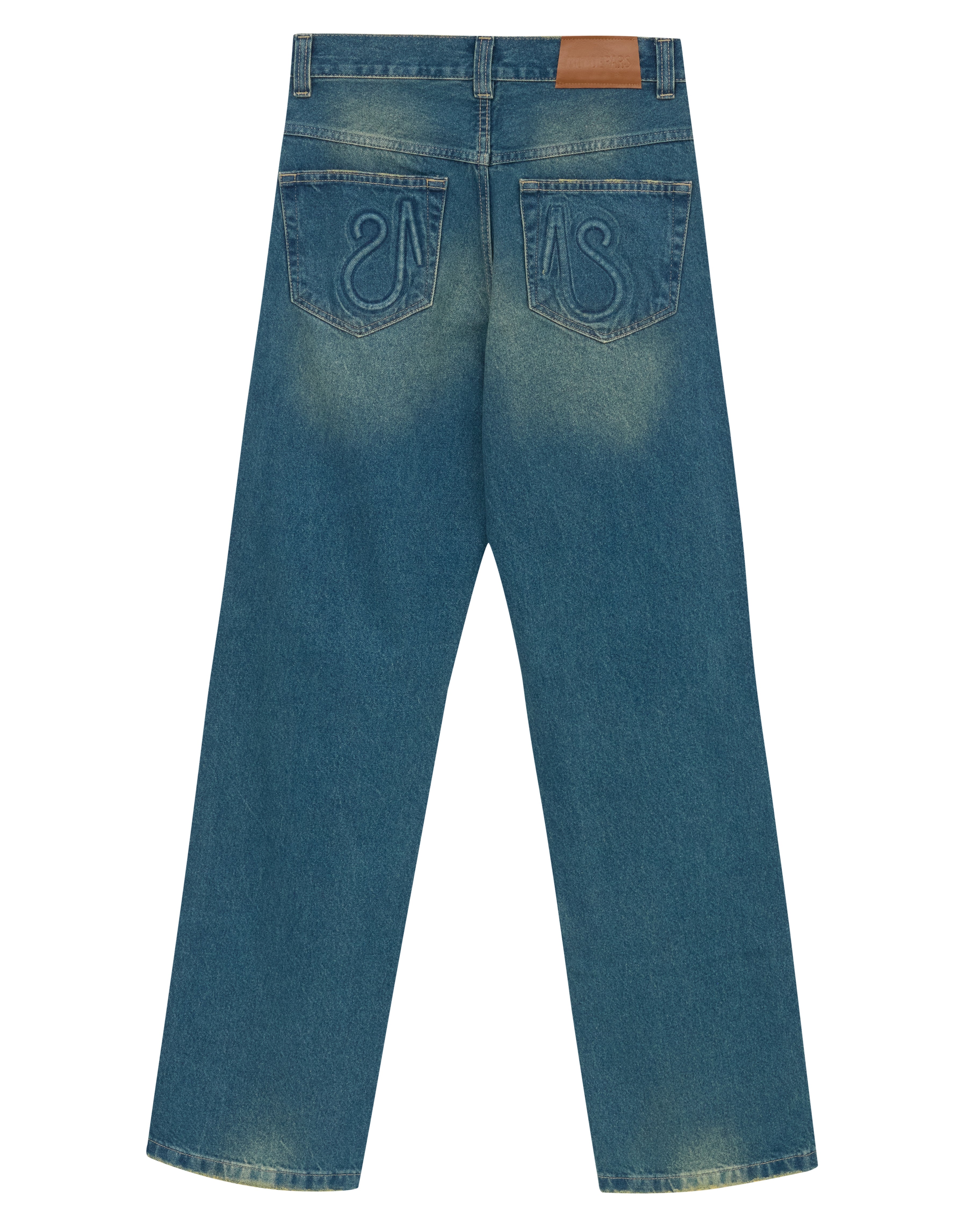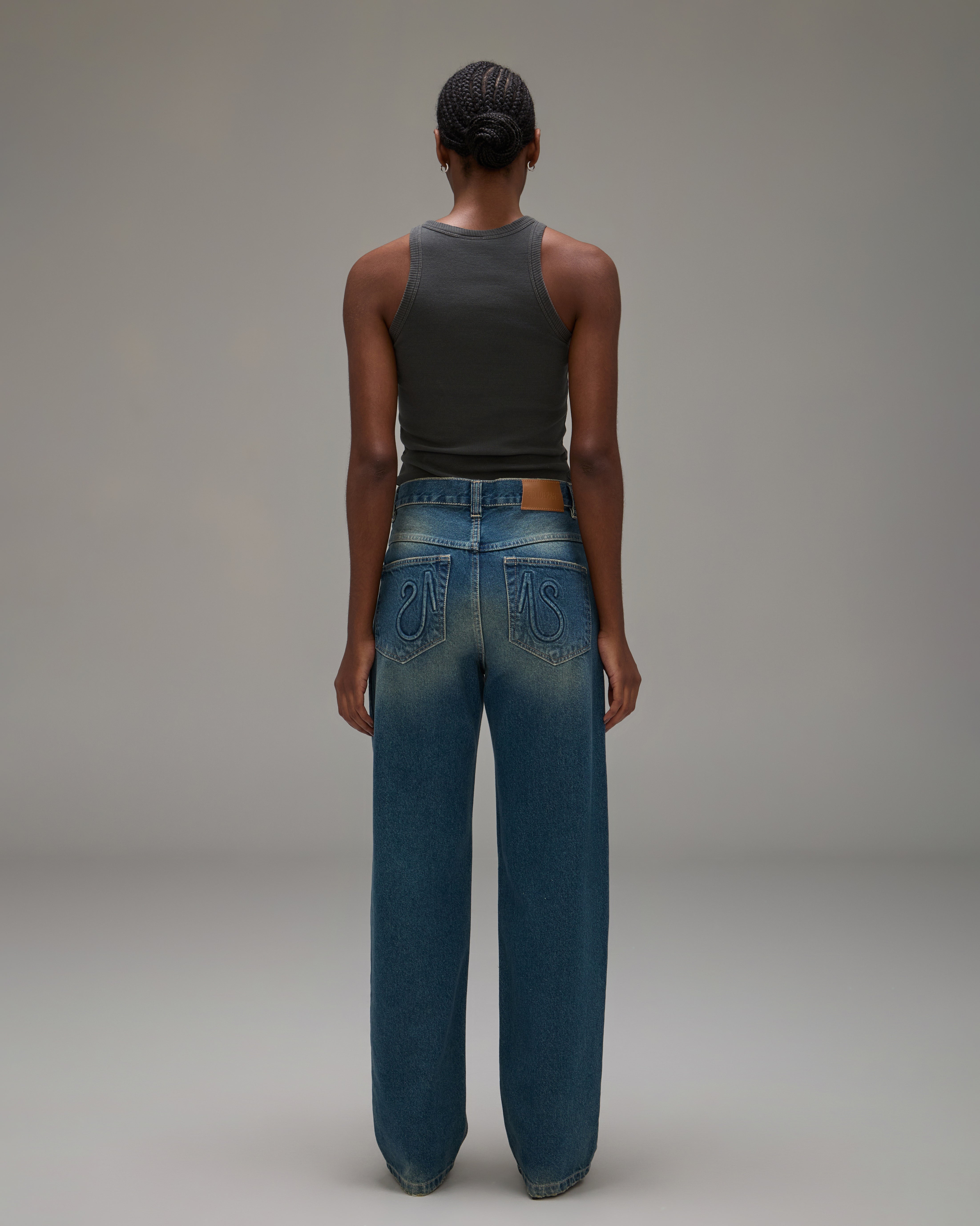 A Calça Jeans Reto é confeccionada em algodão com lavanderia escura e levemente marcada, possui modelagem reta, caimento boyfriend, cós com passantes, fechamento frontal por botão e zíper, cinco bolsos, detalhe logo em relevo nos bolsos traseiros, etiqueta de couro natural produzida com matéria-prima de descarte e acabamento pespontado.