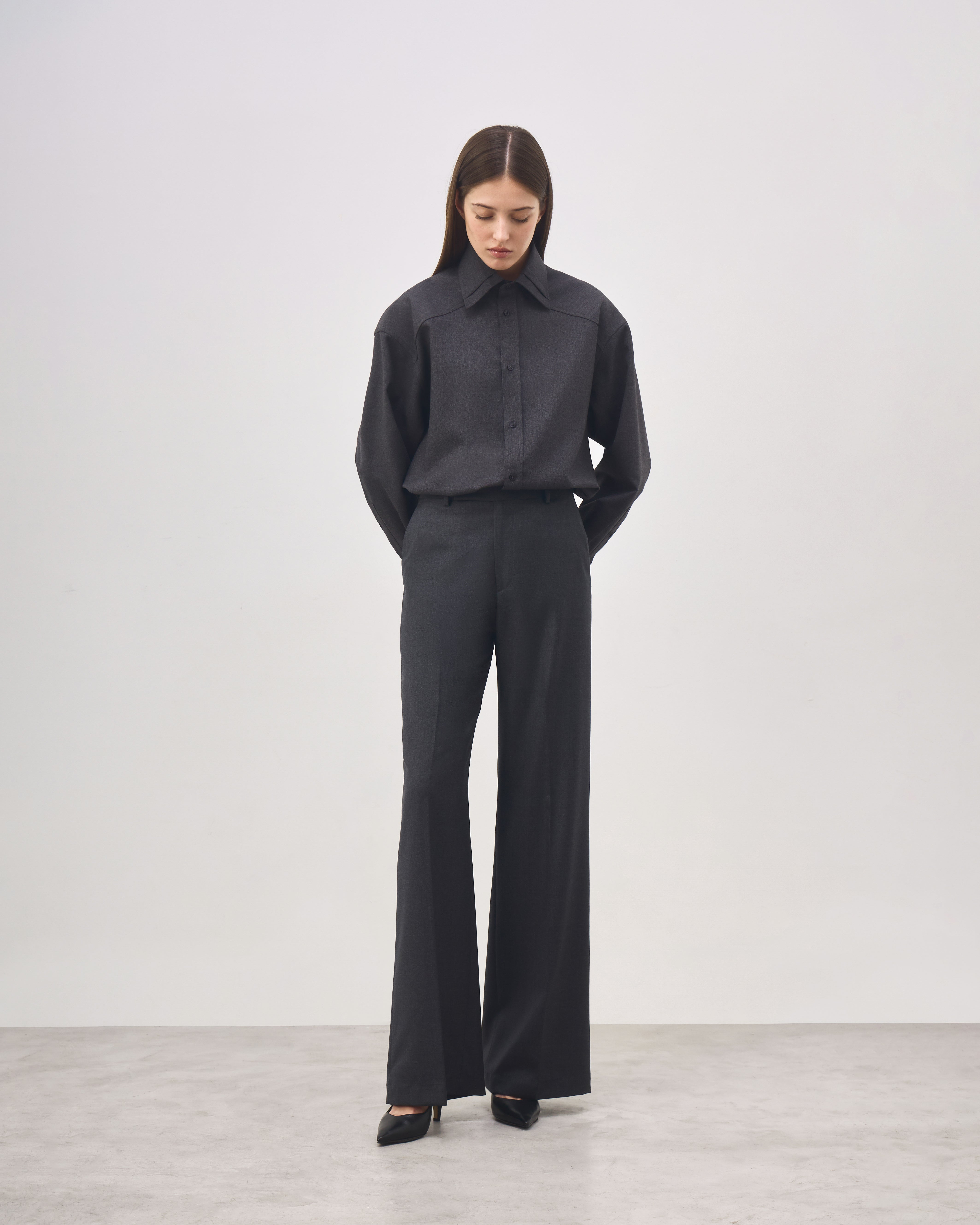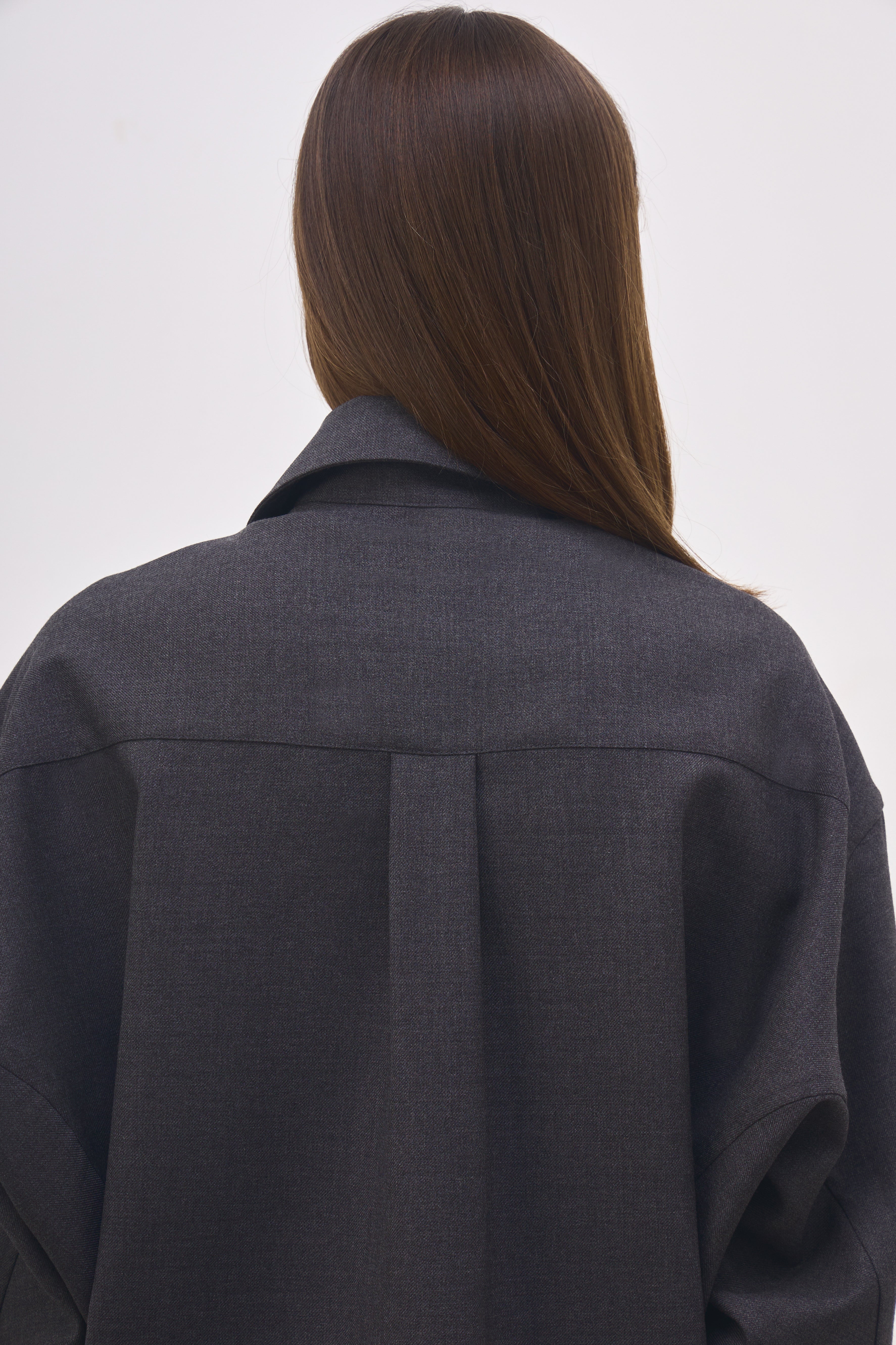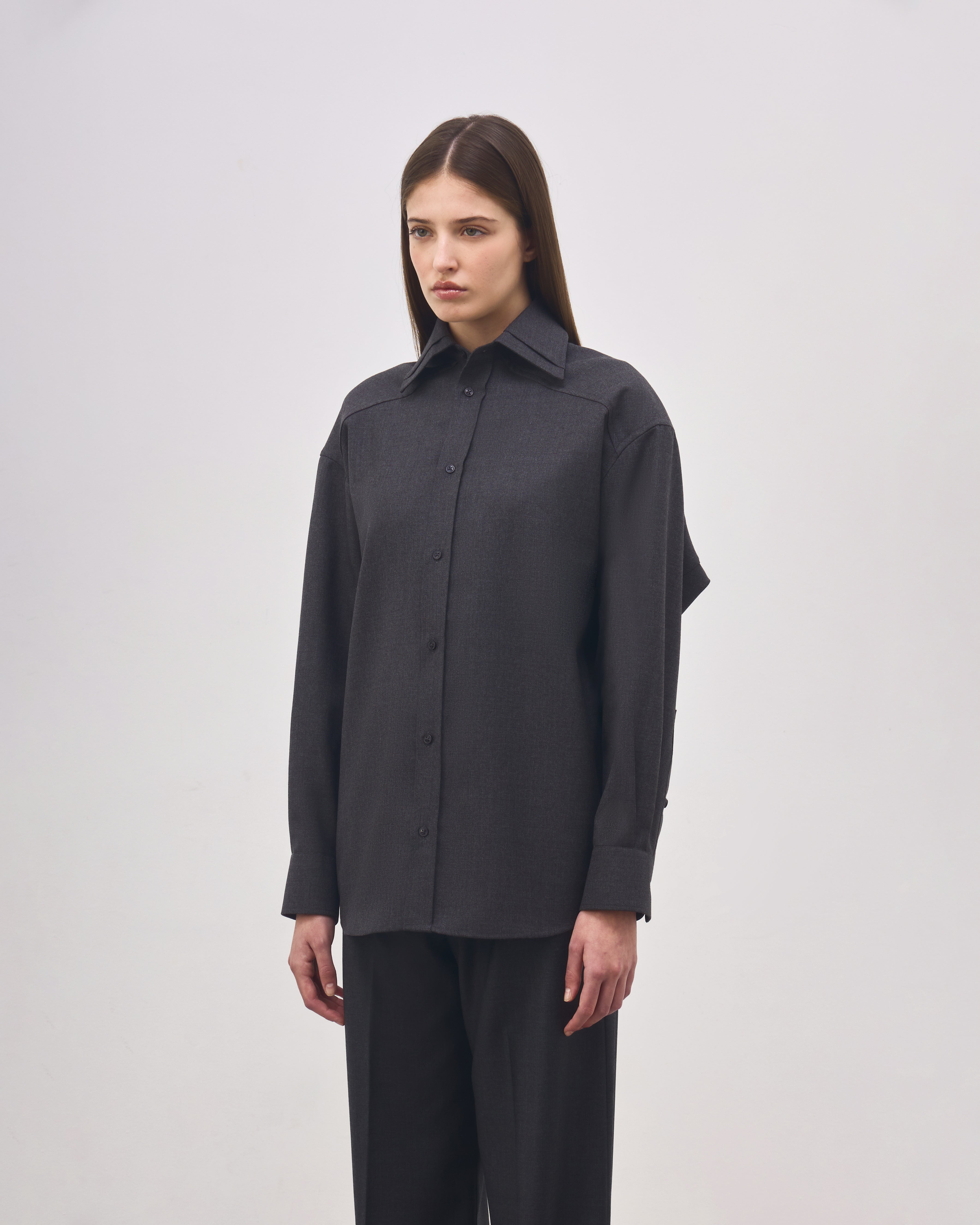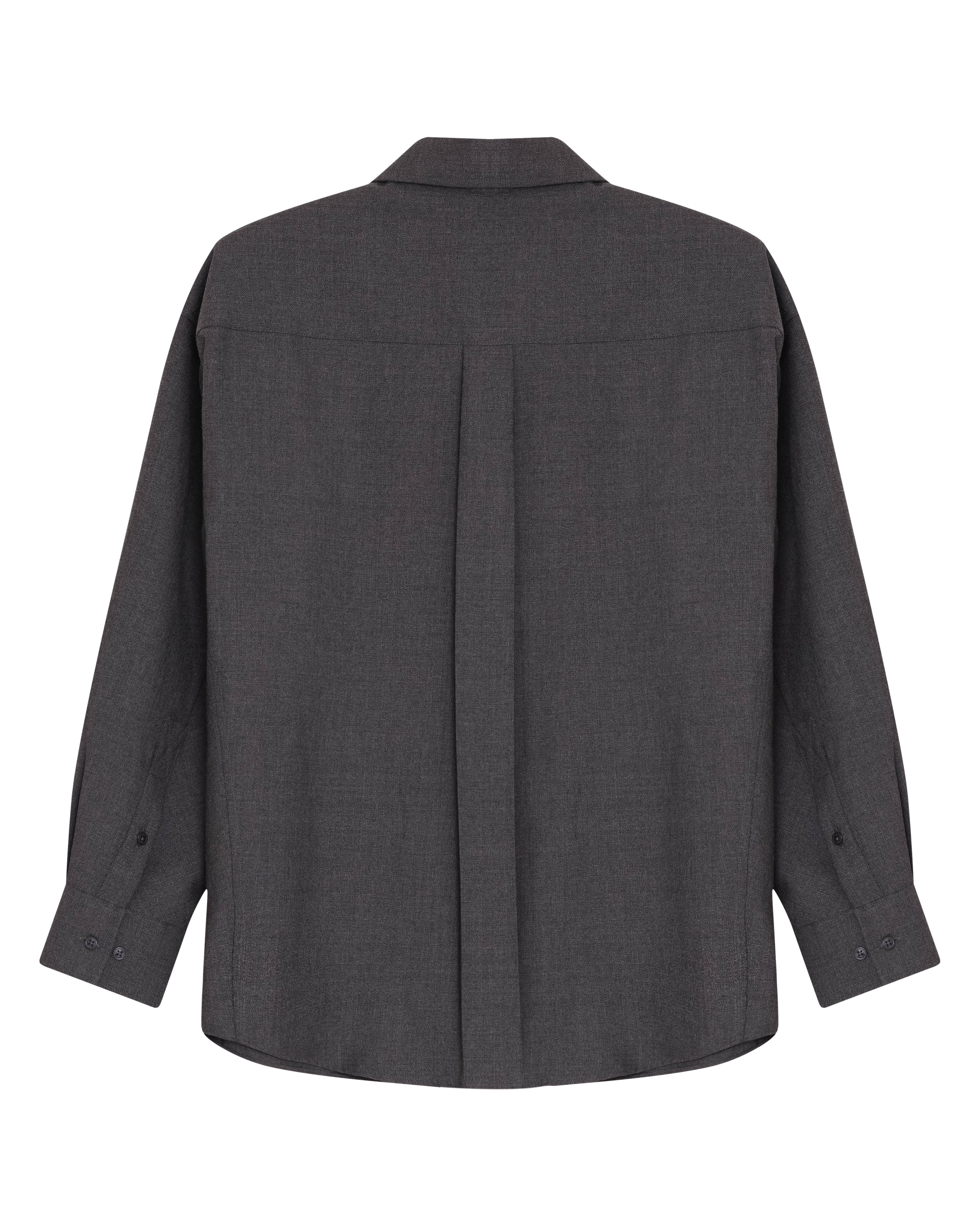 A Camisa Ulysses é confeccionada em lã, possui modelagem ampla, caimento oversized, modelo estruturado, colarinho com efeito duplo, fechamento frontal por botões, mangas longas com abotoamento duplo nos punhos, bolso frontal, prega posterior e acabamento pespontado.
