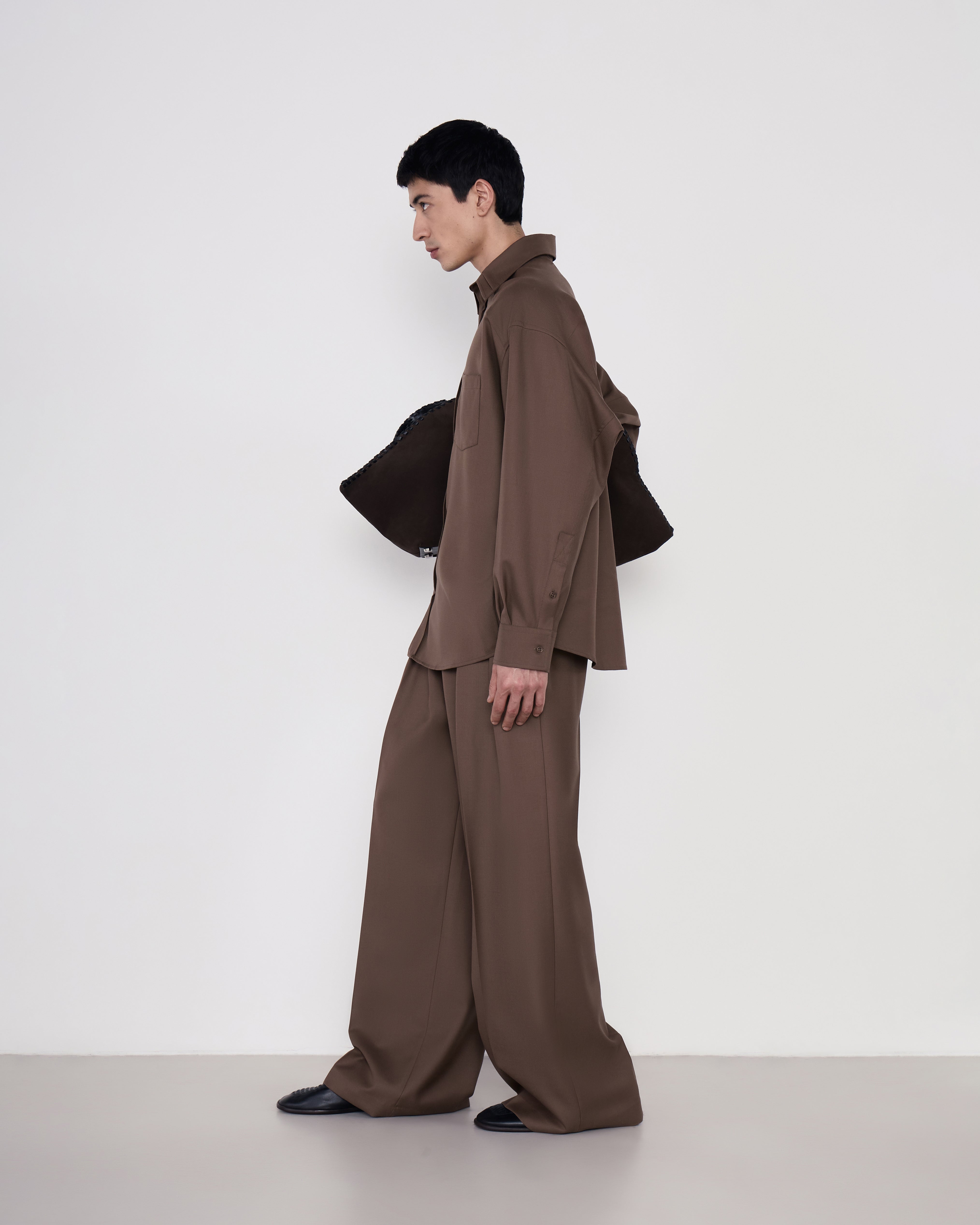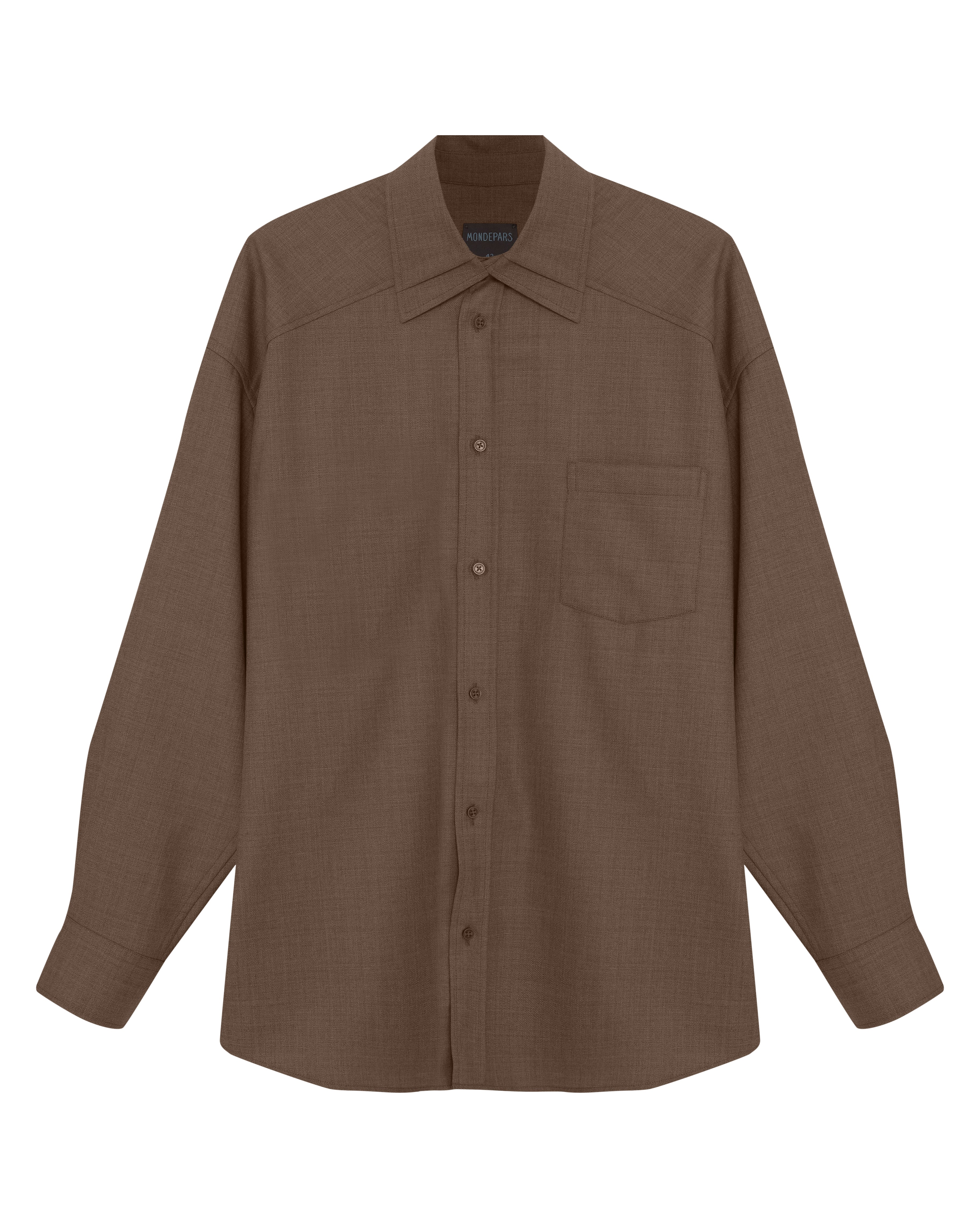 A Camisa Ulysses é confeccionada em lã, possui modelagem ampla, caimento oversized, modelo estruturado, colarinho com efeito duplo, fechamento frontal por botões, mangas longas com abotoamento duplo nos punhos, bolso frontal, prega posterior e acabamento pespontado.