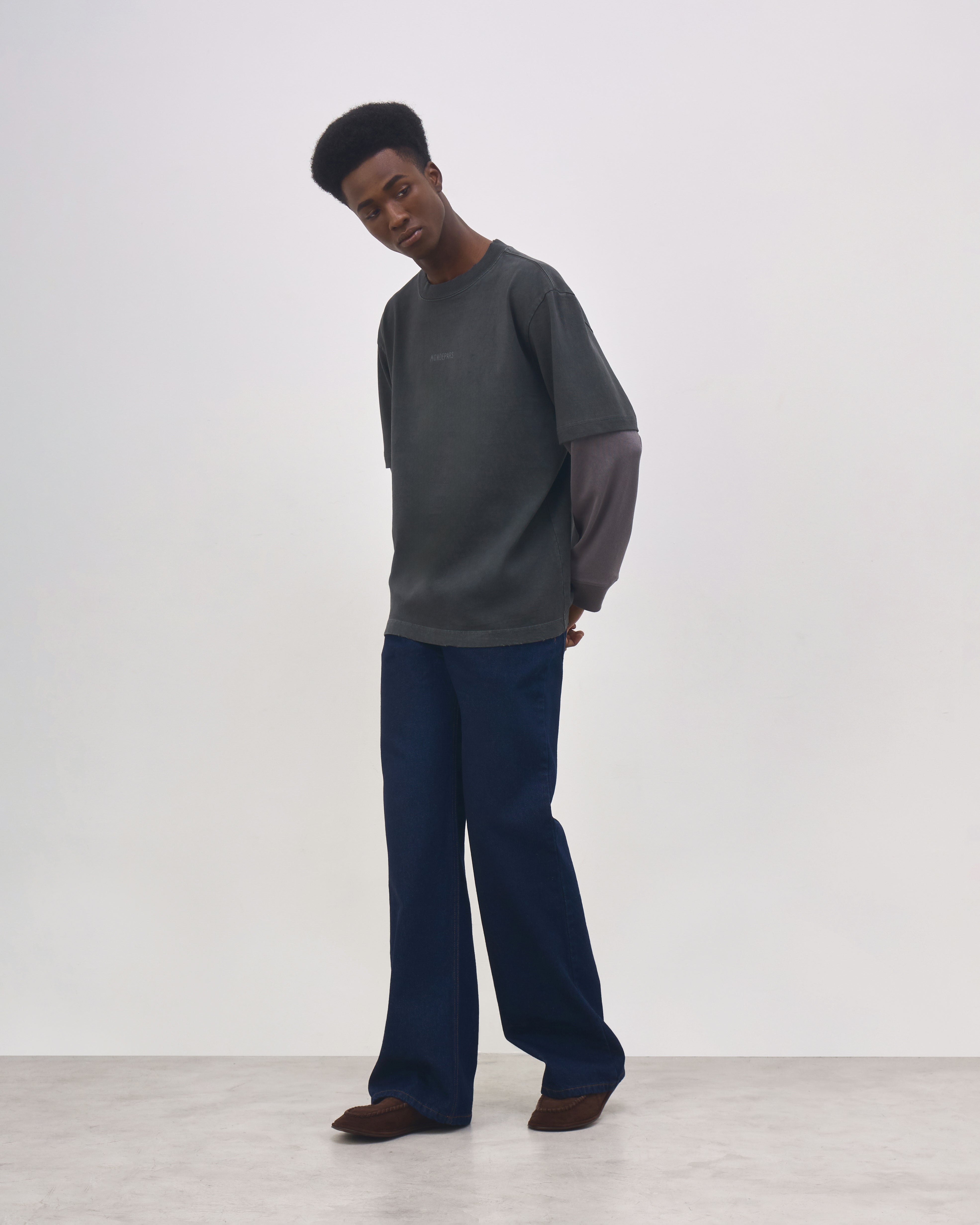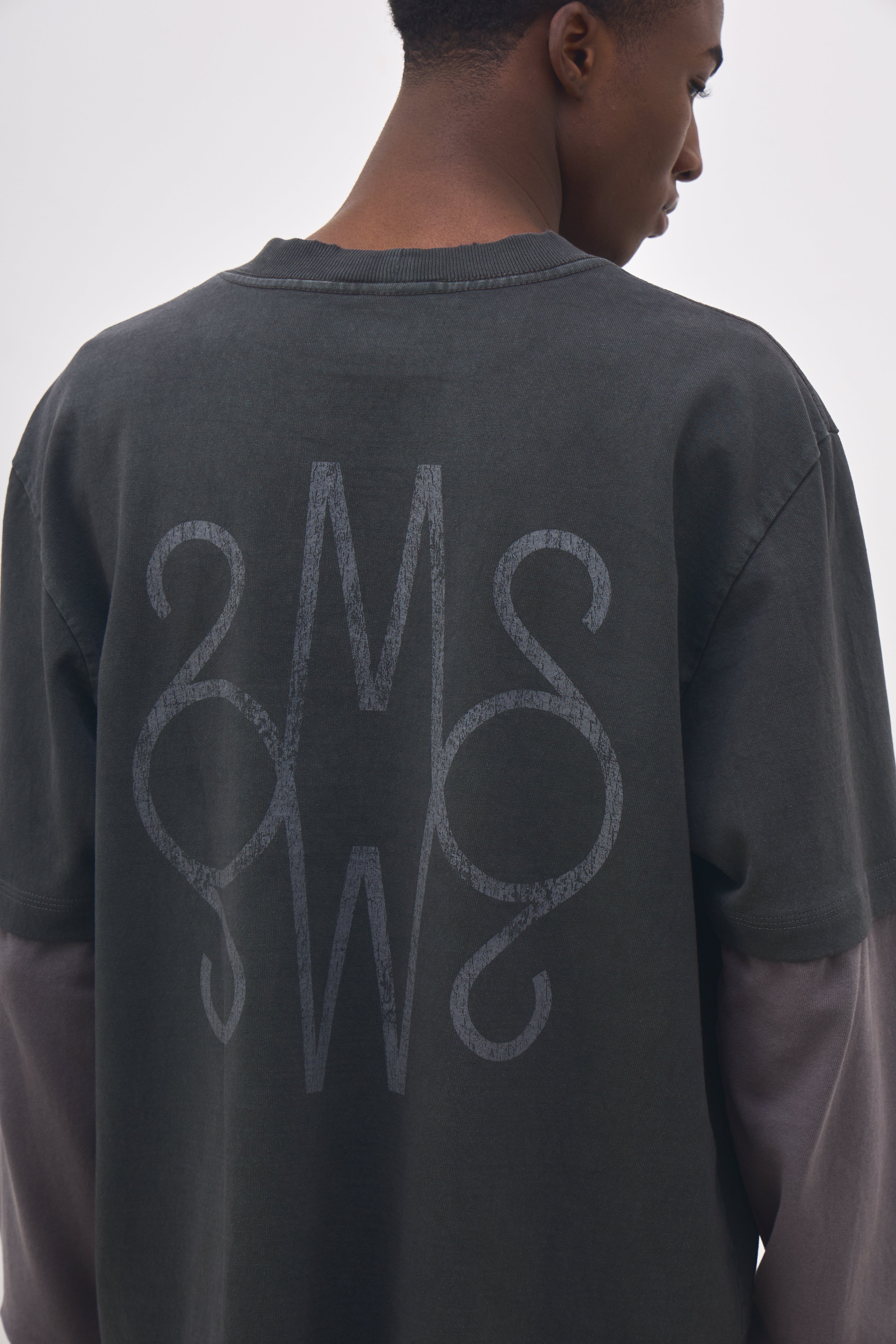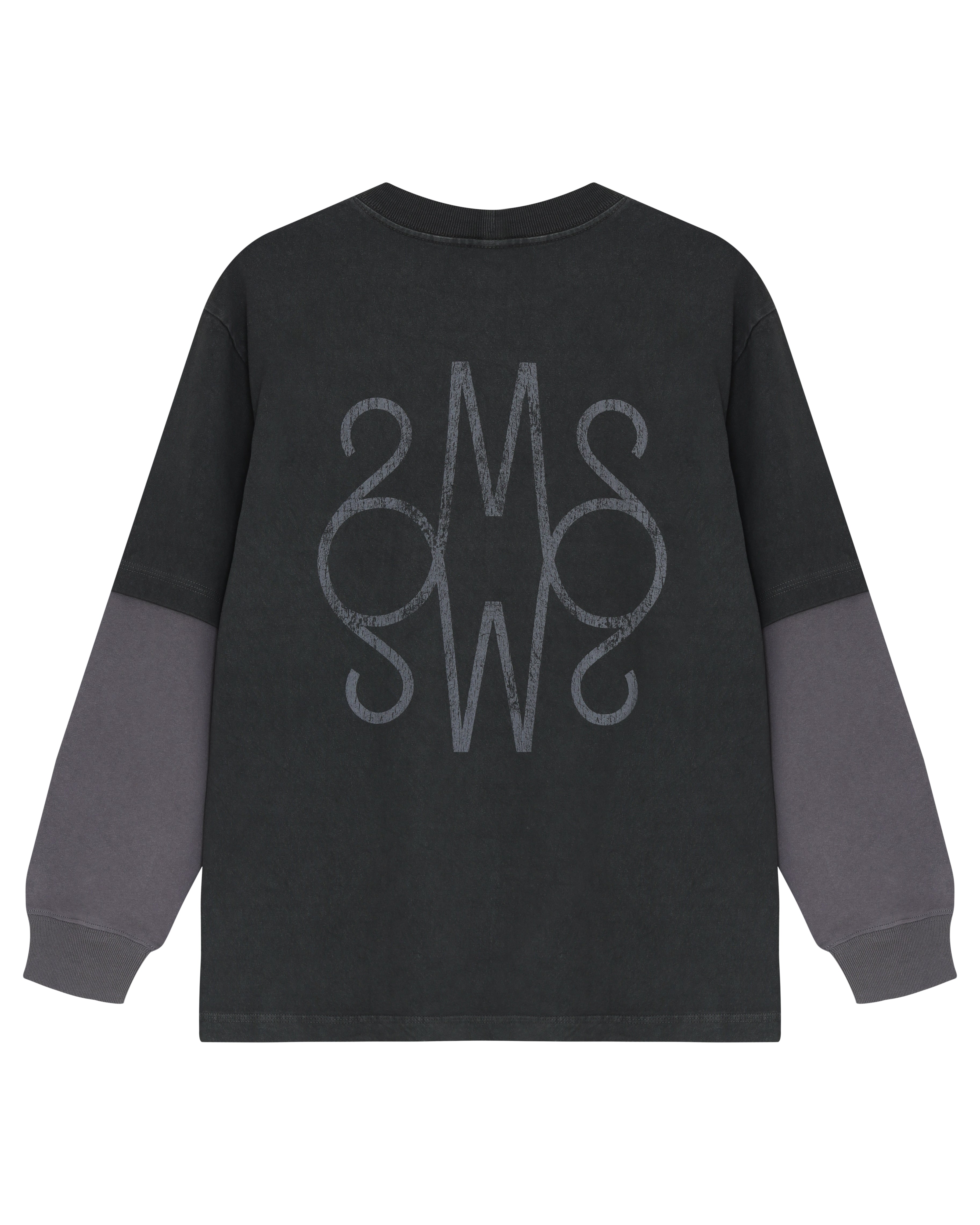 A Camiseta Ari é confeccionada em malha com lavanderia vintage, possui gola redonda em ribana, estampa de silk desgastado com assinatura Mondepars em baixo contraste na frente e logo entrelaçado nas costas, mangas longas com recorte bicolor, detalhes de puídos, barra reta e acabamento pespontado.