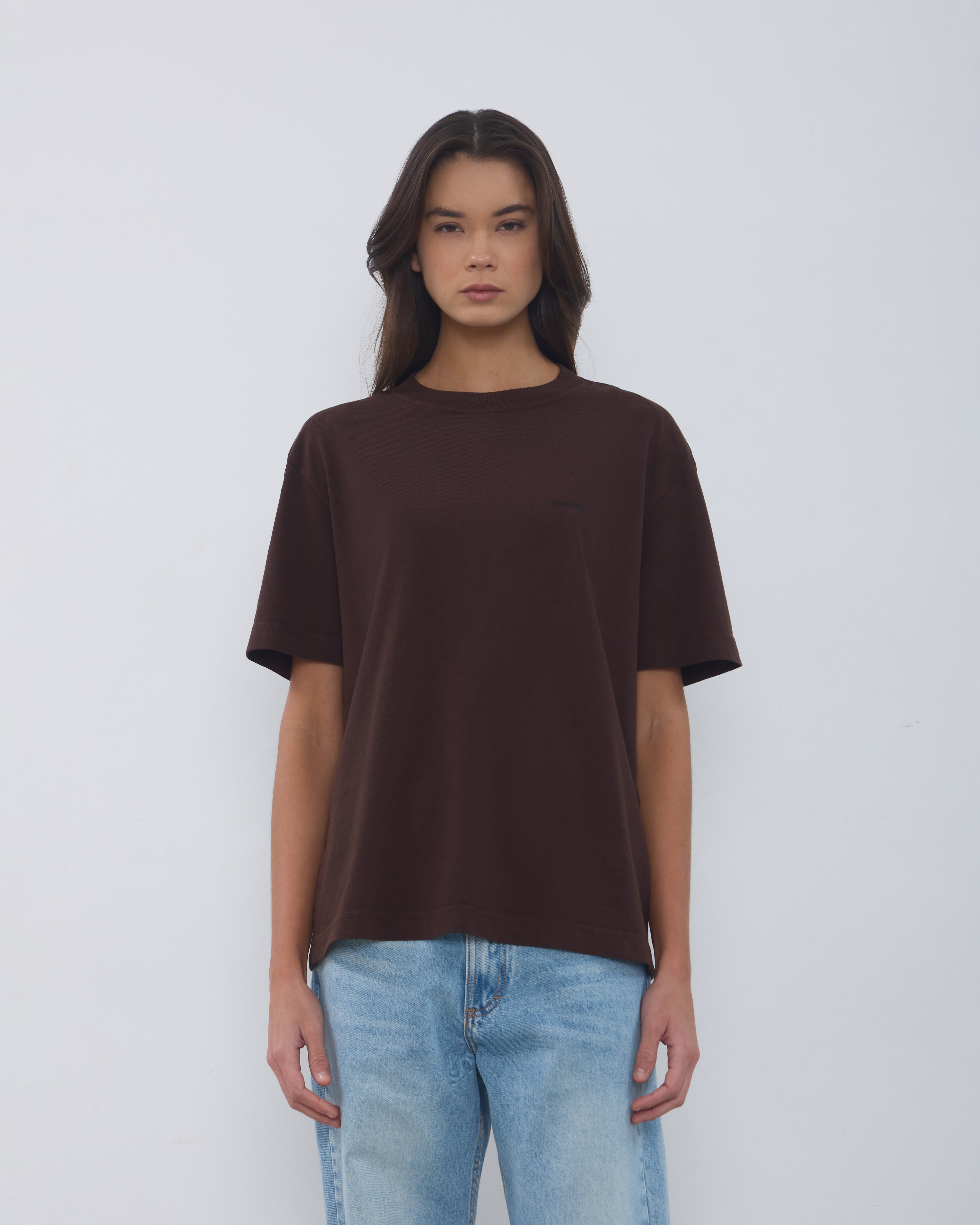 A Camiseta Bento é confeccionada em malha, possui cor especialmente desenvolvida em lavanderia, modelagem oversize, caimento reto, gola redonda em ribana, mangas curtas, silk sem toque, barra reta e acabamento pespontado.