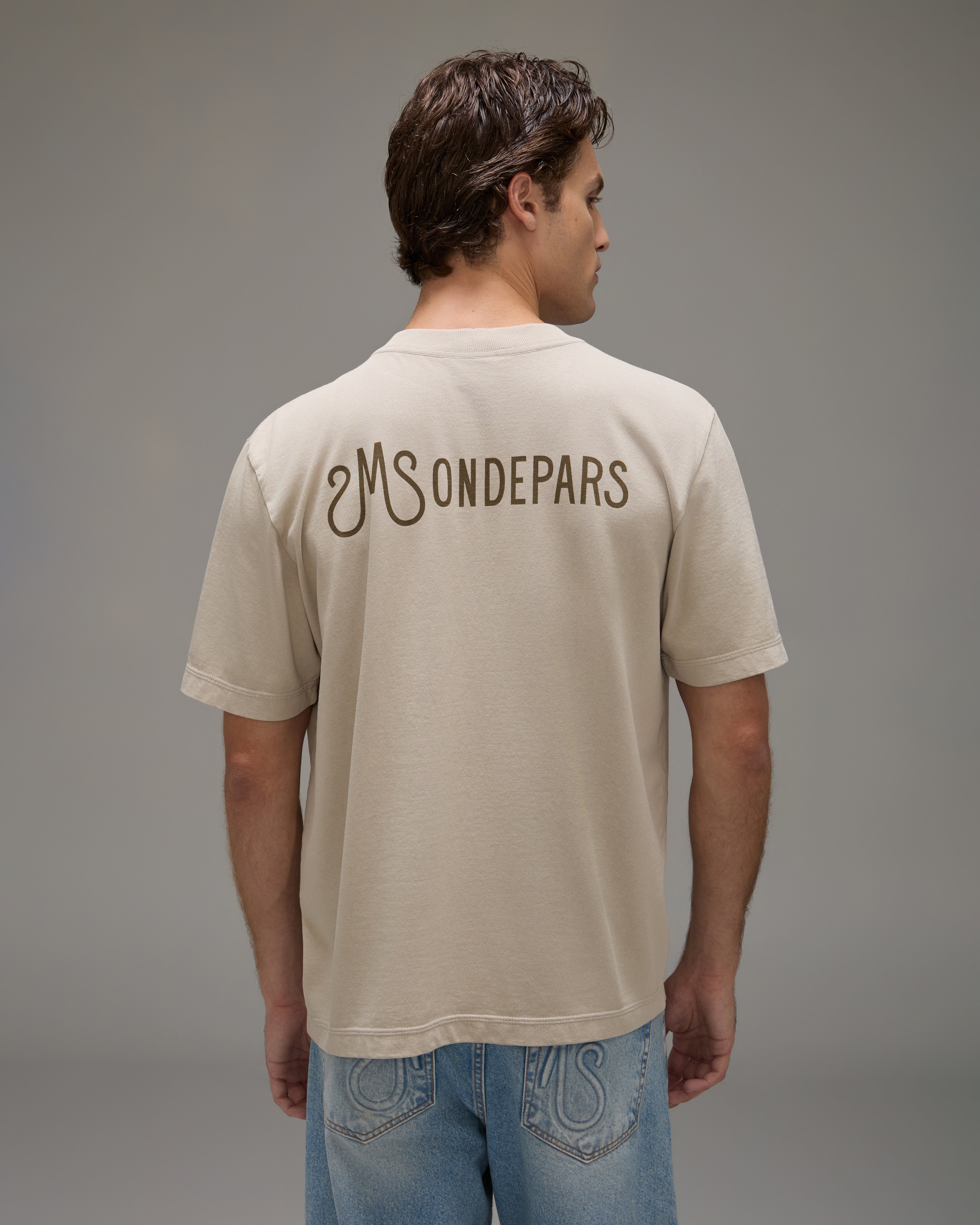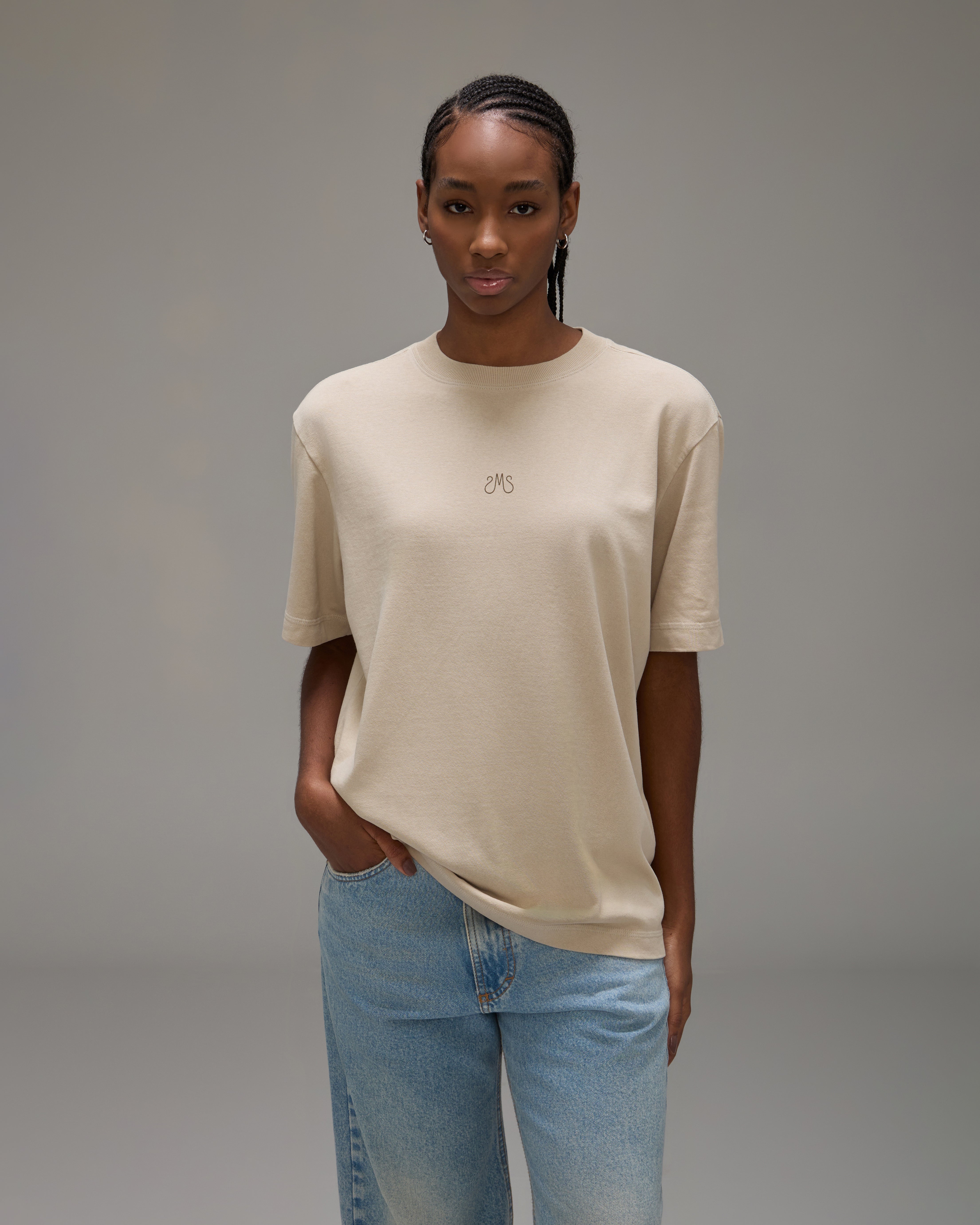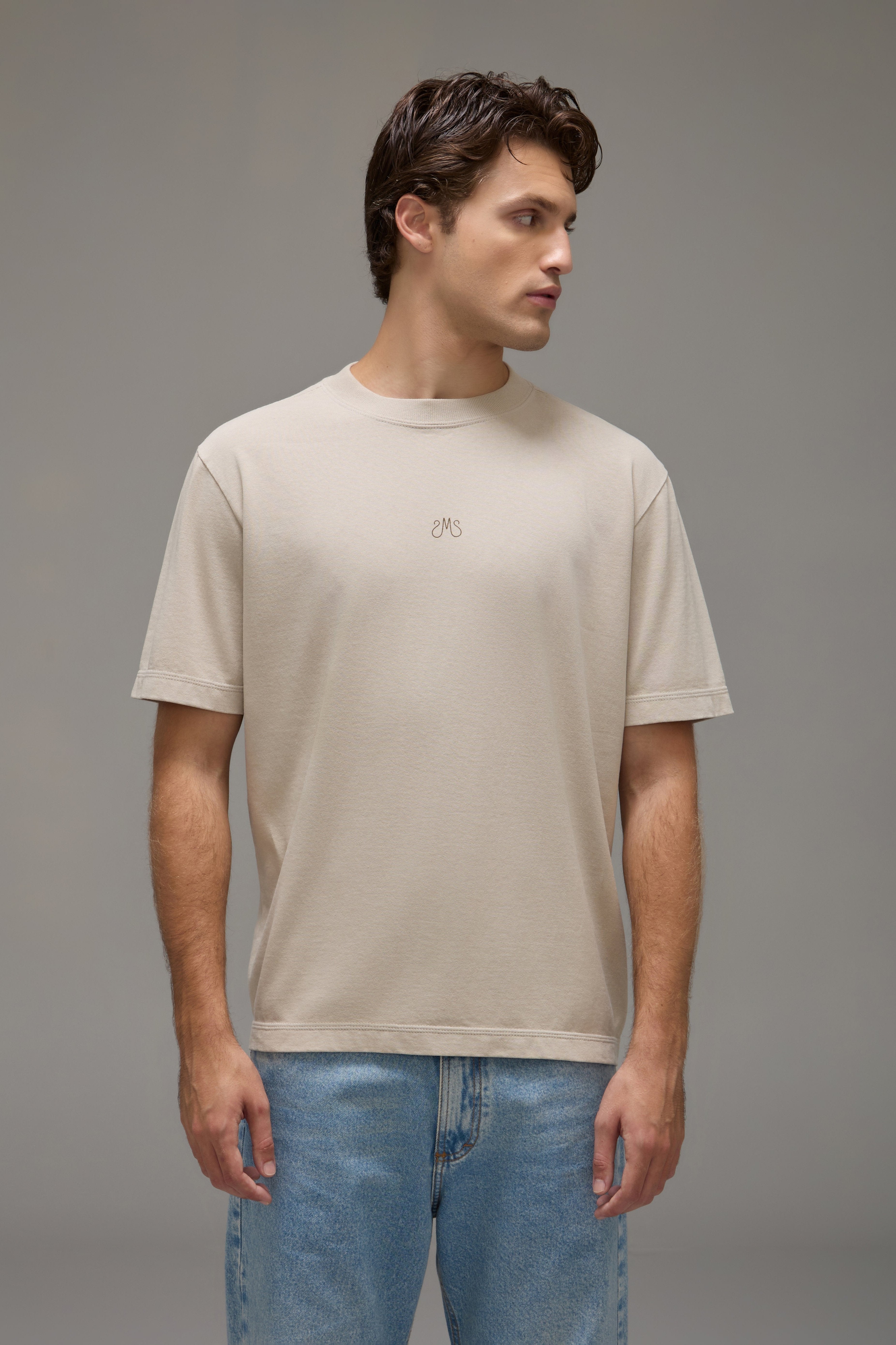 A Camiseta Beta é confeccionada em malha pesada, possui cor especialmente desenvolvida em lavanderia, caimento reto, gola redonda ribana marcada com detalhes de pesponto triplo, mangas curtas, silk sem toque e barra reta.