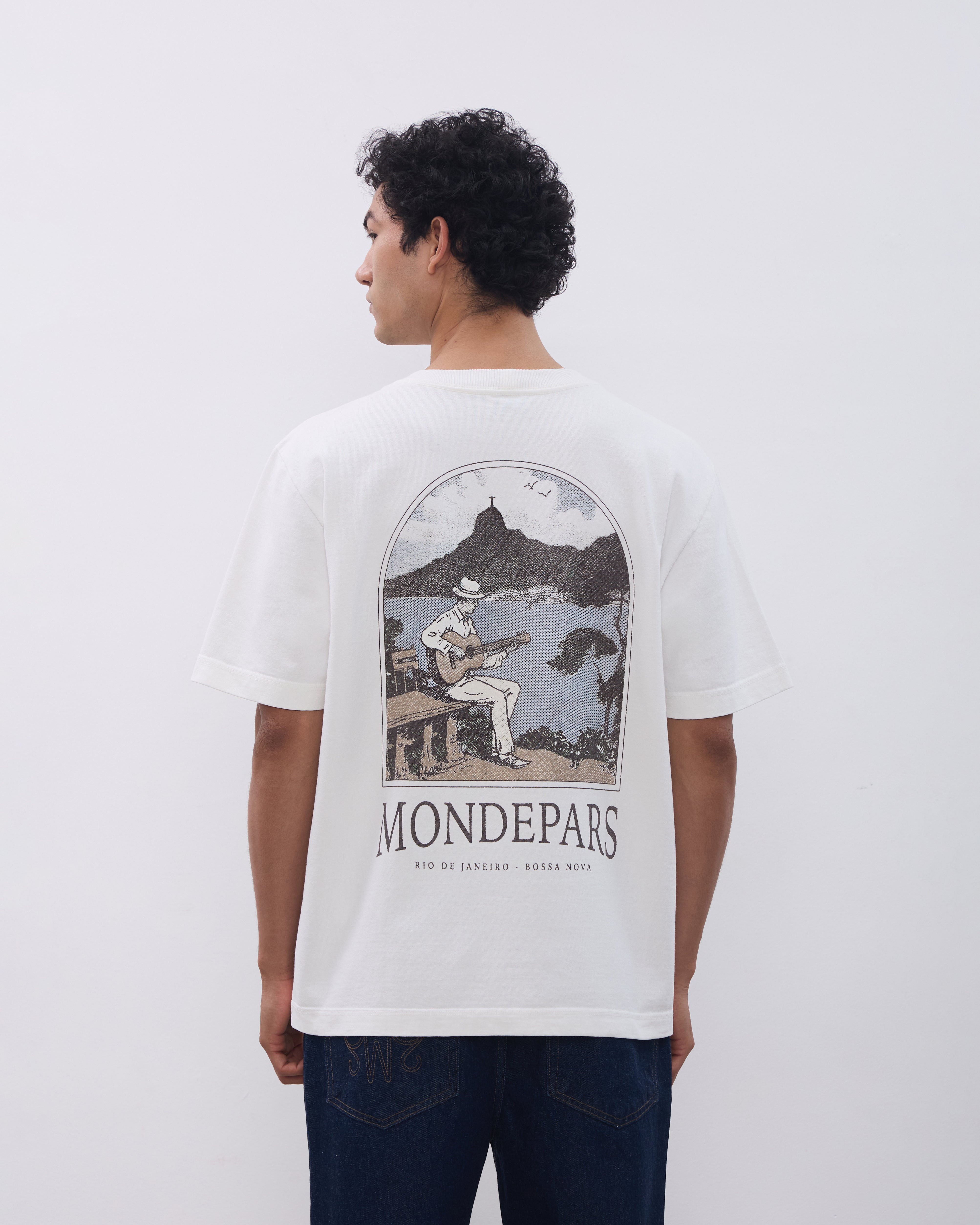 A Camiseta Bossa é confeccionada em malha pesada, possui modelagem oversize, caimento reto, gola redonda em ribana, mangas curtas, silk sem toque frontal e posterior, barra reta e acabamento pespontado.