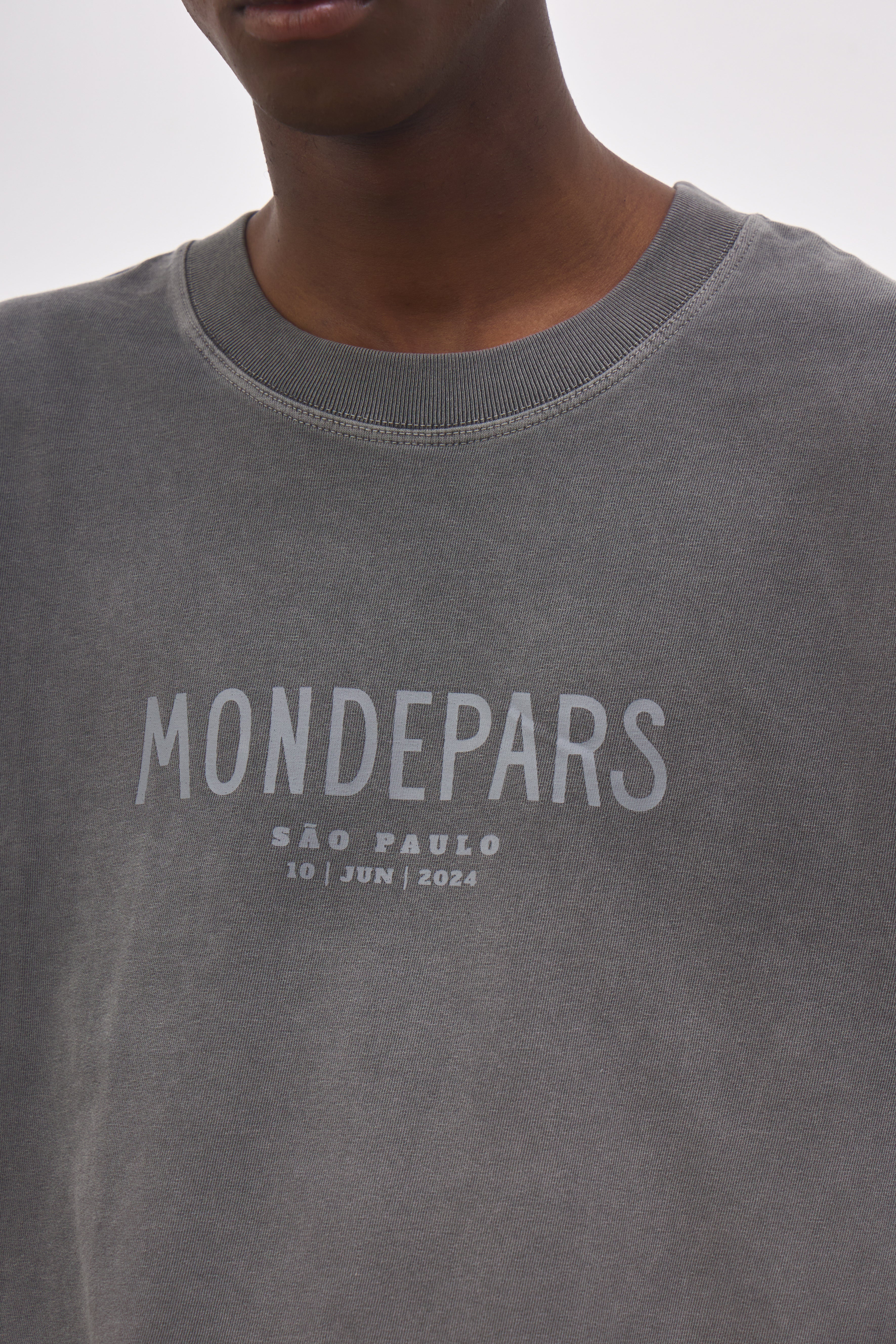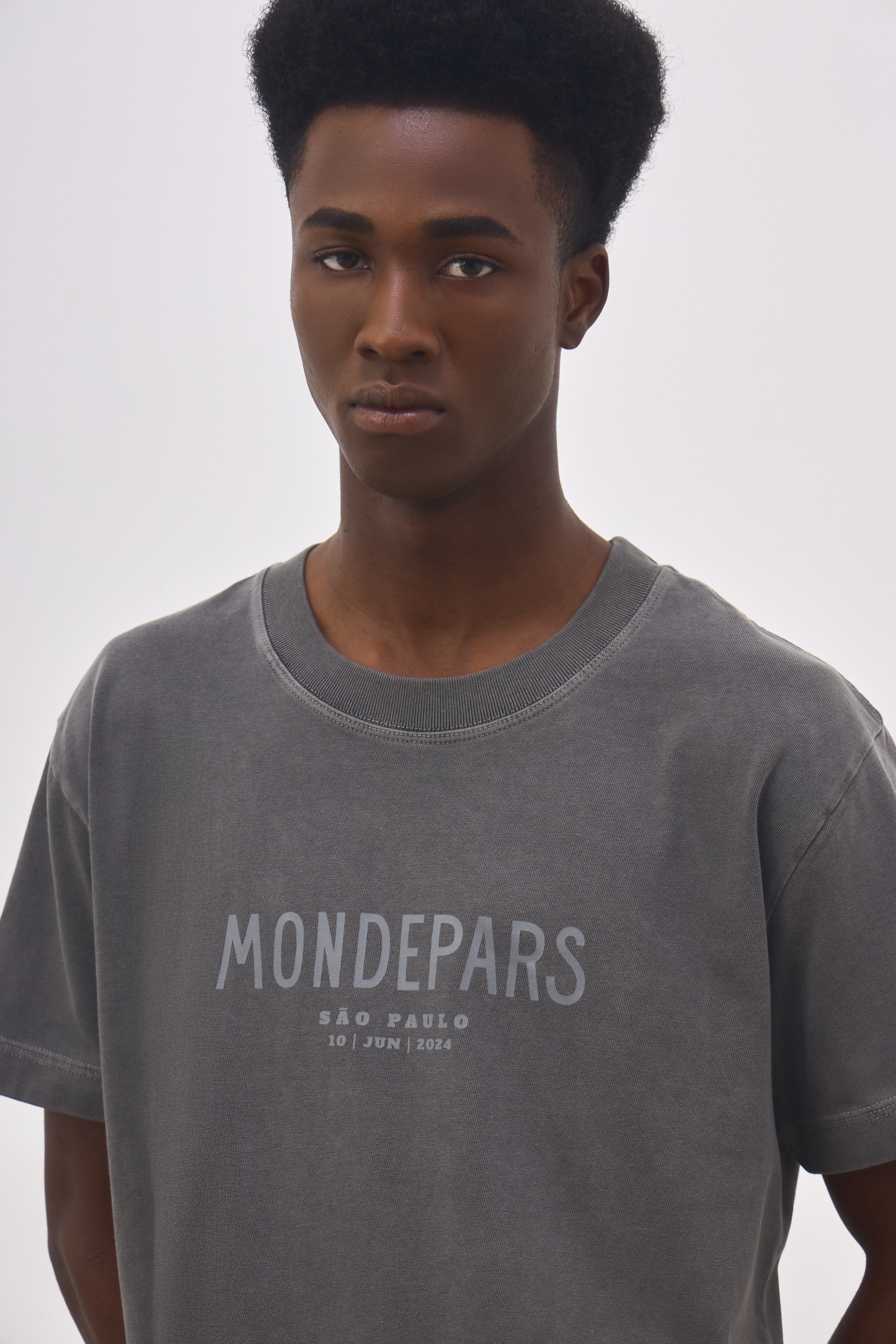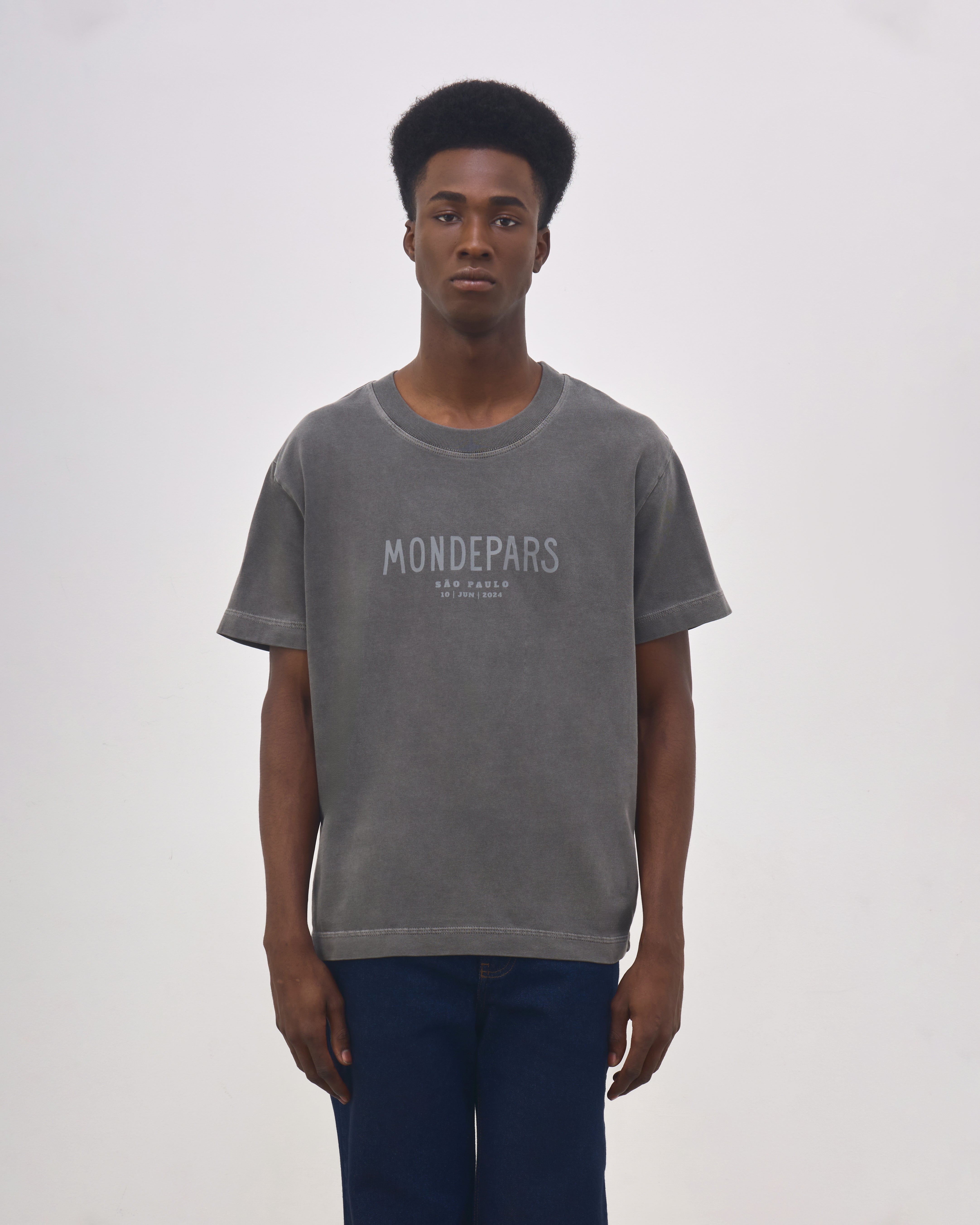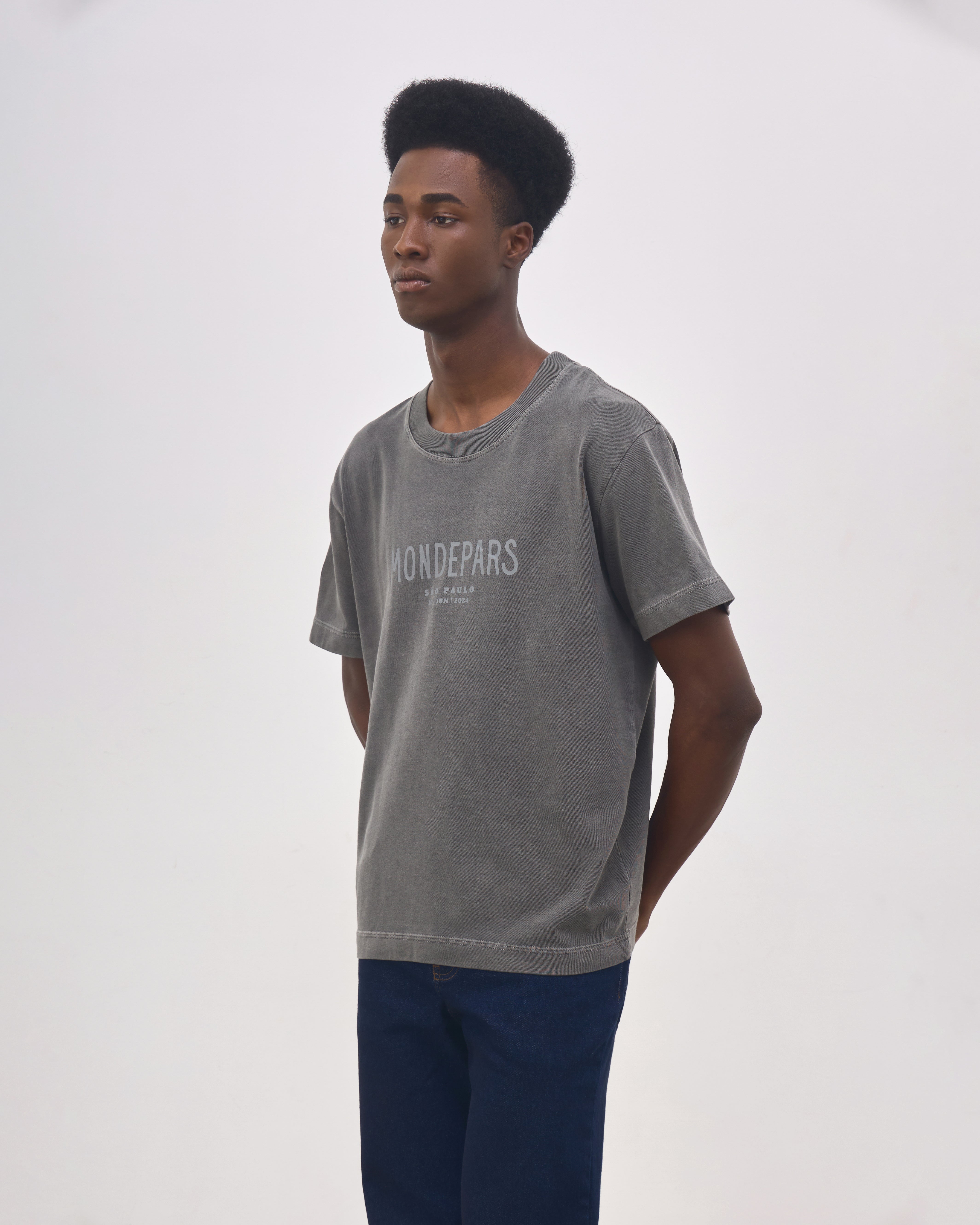 A Camiseta Junho é confeccionada em algodão com lavanderia especial na cor e no toque macio, possui caimento oversized, gola redonda em ribana, estampa frontal em silk sem relevo, mangas curtas e acabamento pespontado.