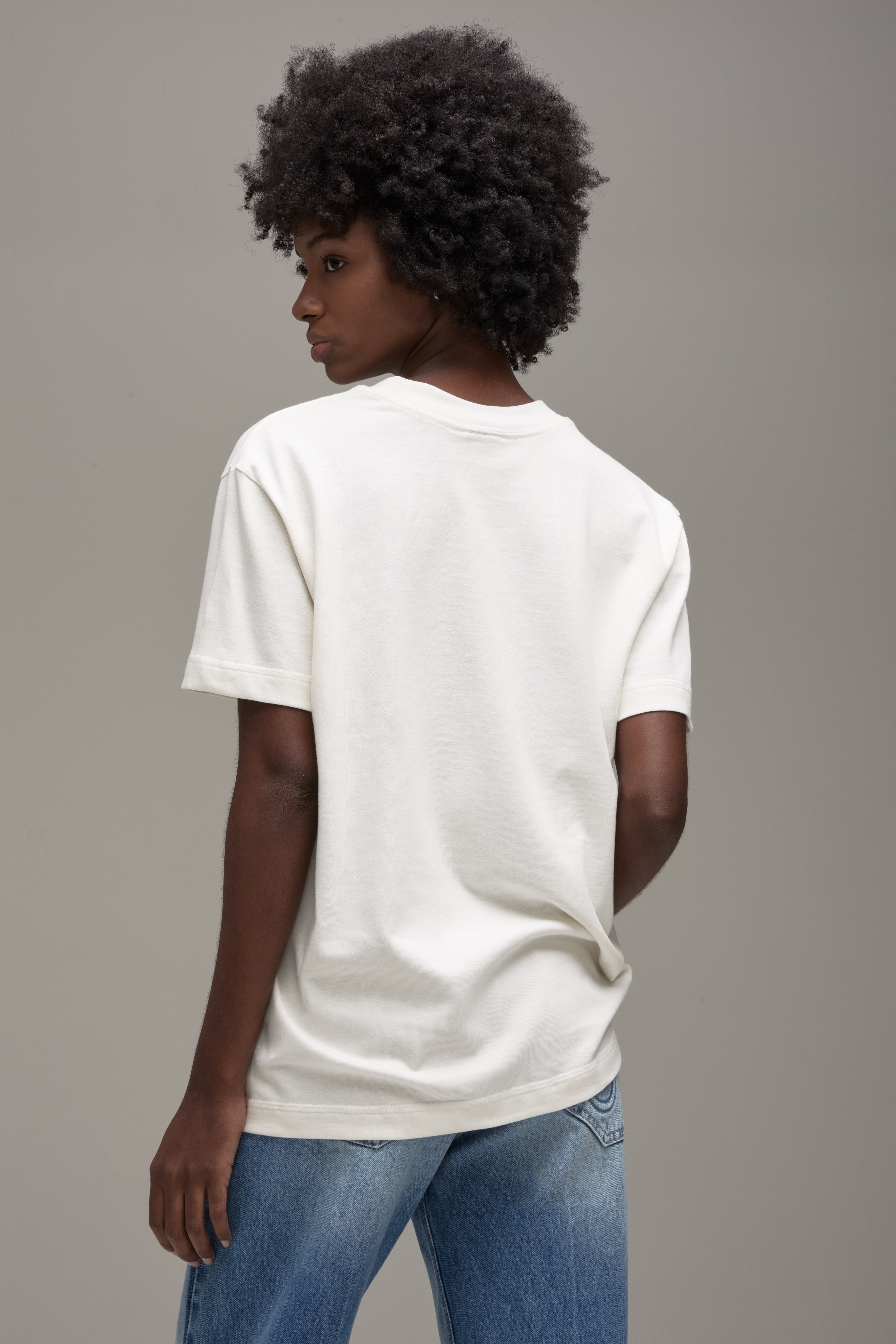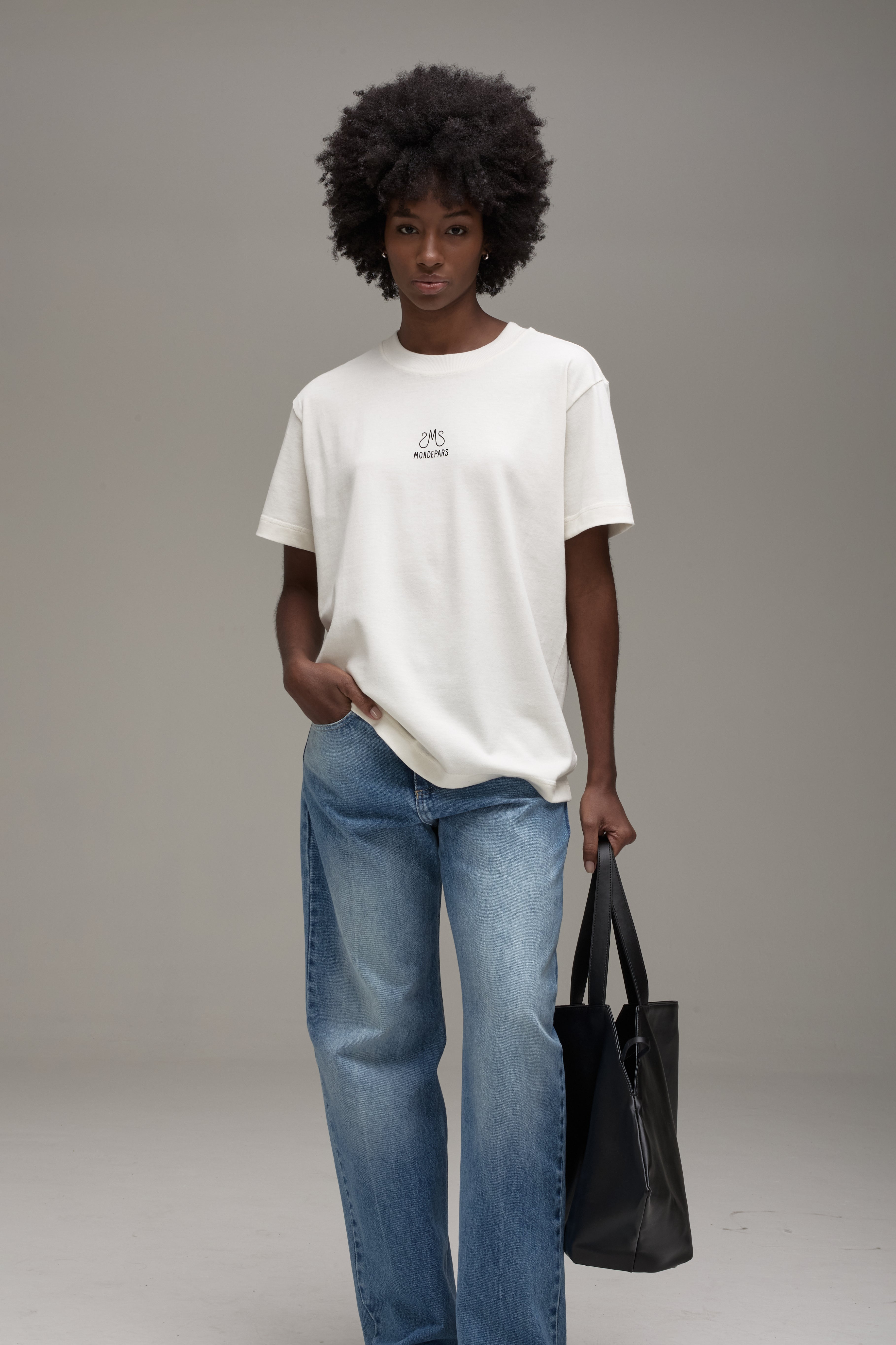 A Camiseta Mondepars é confeccionada em malha pesada, possui caimento oversize, gola redonda em ribana, silk frontal, mangas curtas e acabamento pespontado.