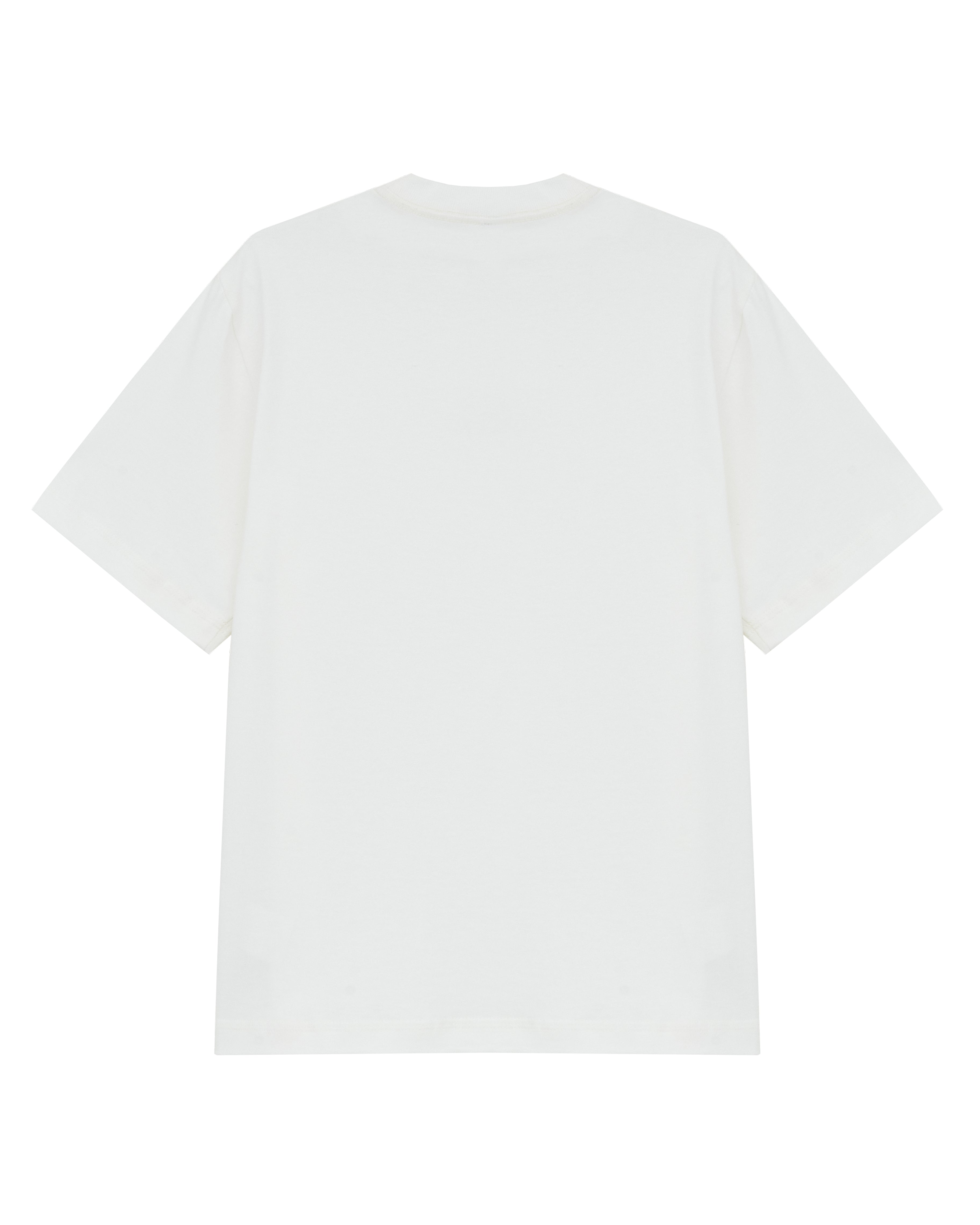 A Camiseta Romã é confeccionada em malha peso médio, possui caimento reto, gola redonda em ribana, bordado frontal especialmente desenvolvido com ponto corrente diferenciado, mangas curtas e acabamento pespontado.