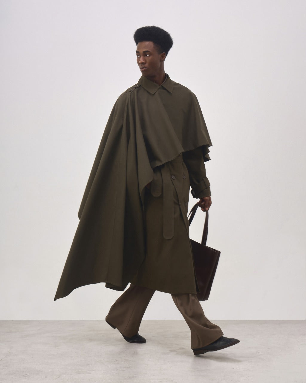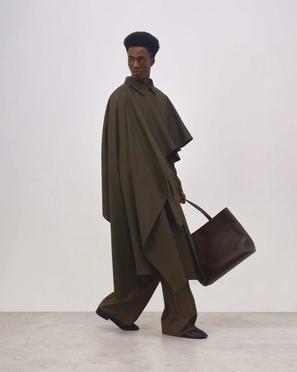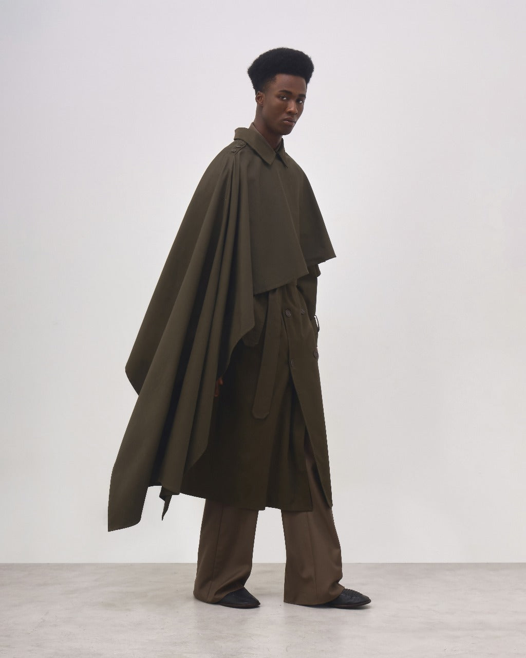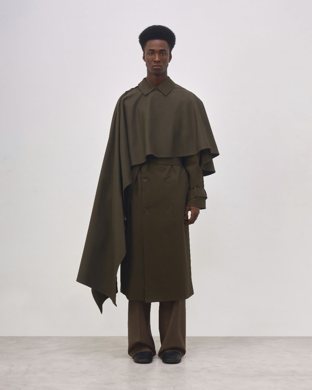 A Capa Carol é confeccionada em algodão com elastano, possui modelagem ampla e assimétrica, caimento leve e flexível, fechamento frontal por botões personalizados e acabamento reforçado nas extremidades.