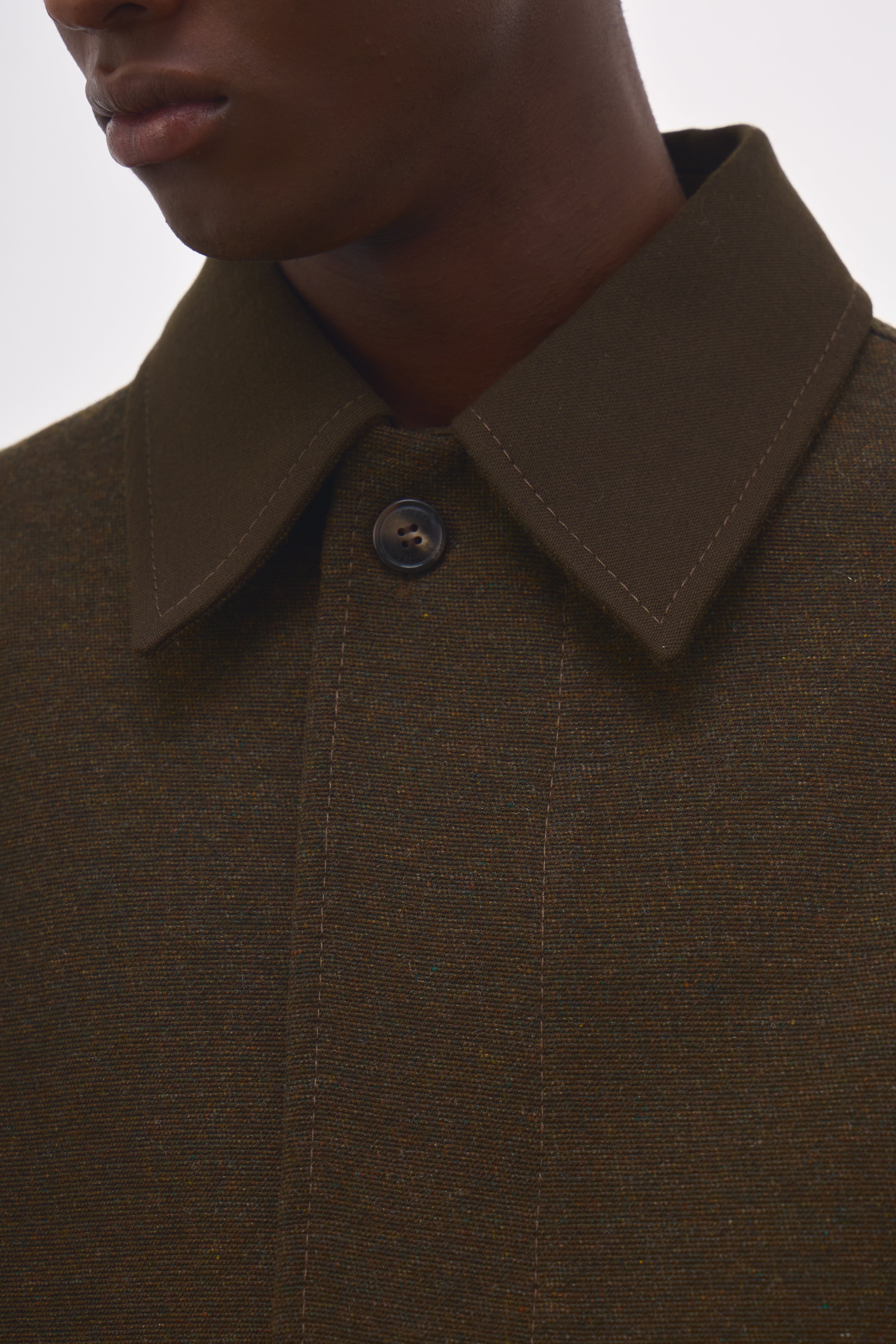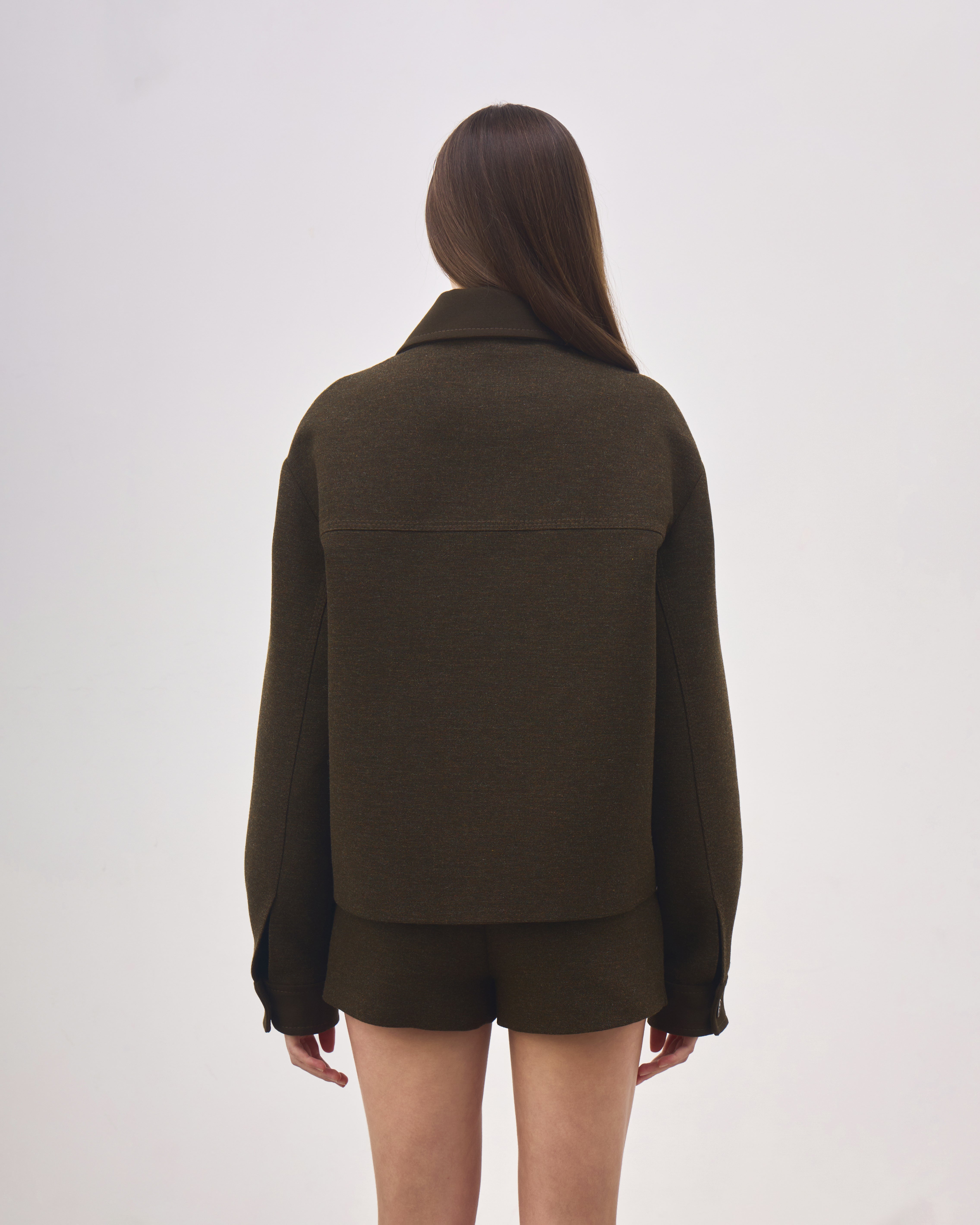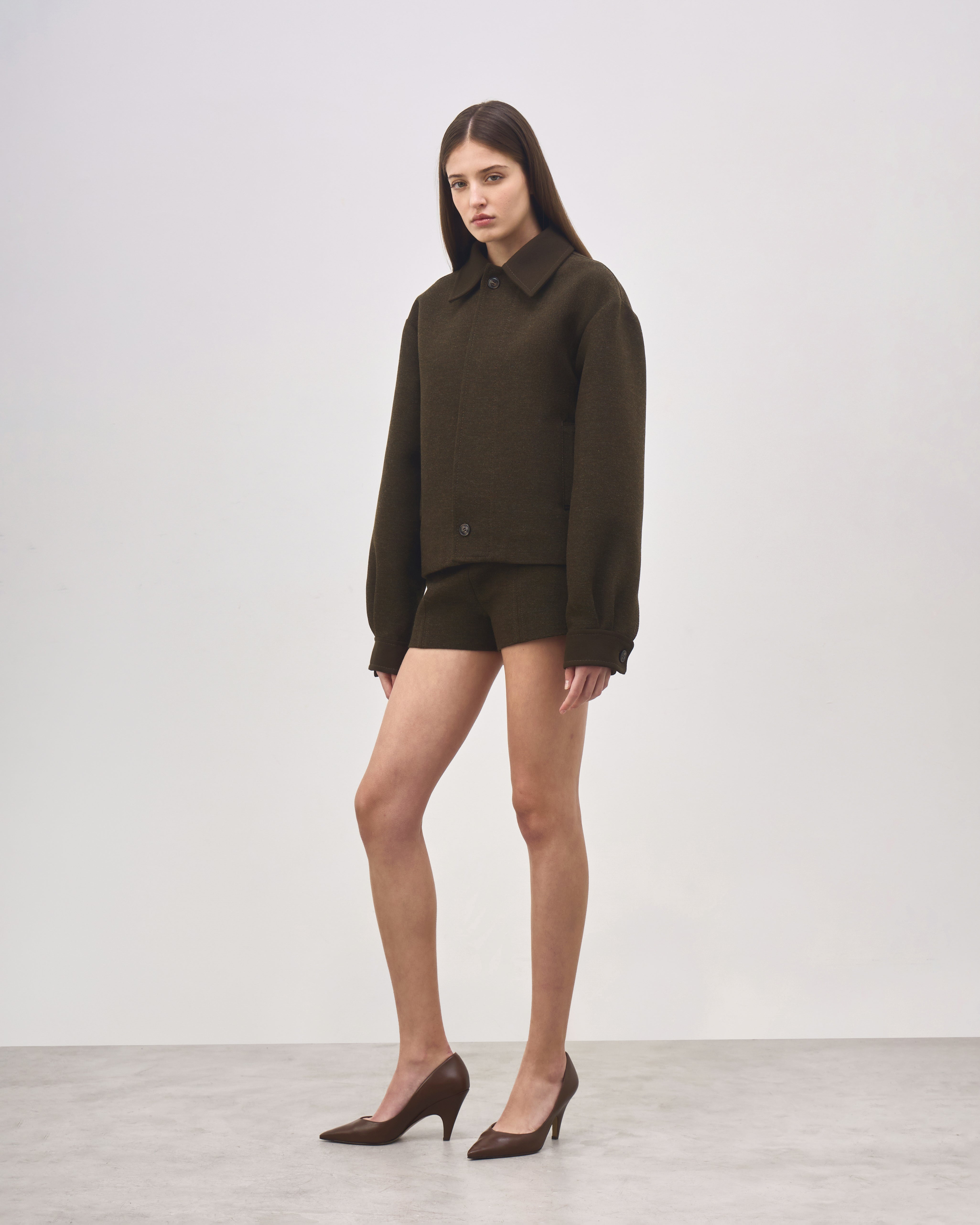 A Jaqueta Dante é confeccionada em lã importada, possui modelo estruturado, colarinho, fechamento frontal invisível por zíper e por botões visíveis, mangas longas com punhos levemente bufantes e fechamento por botão, forro embutido e acabamento pespontado.