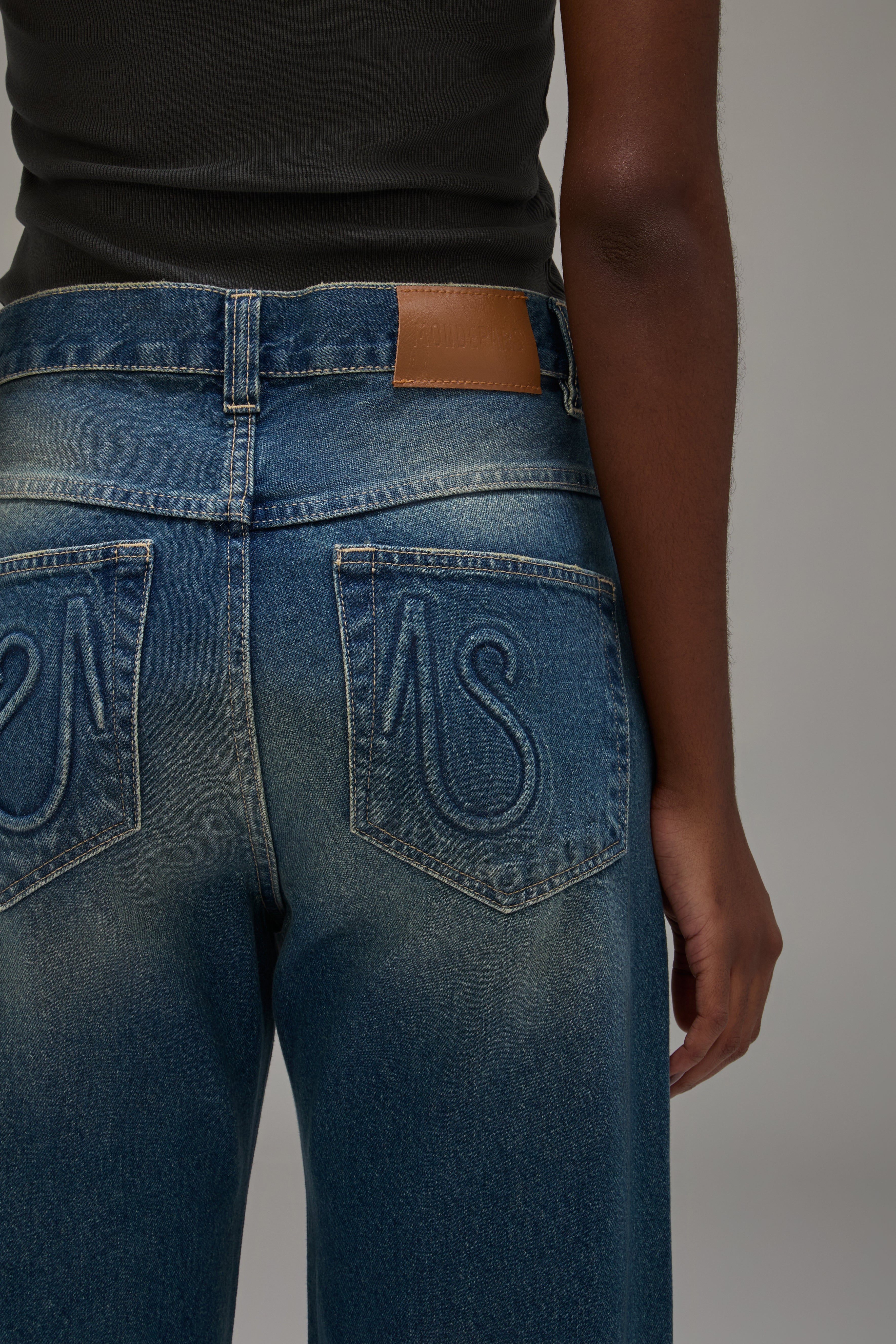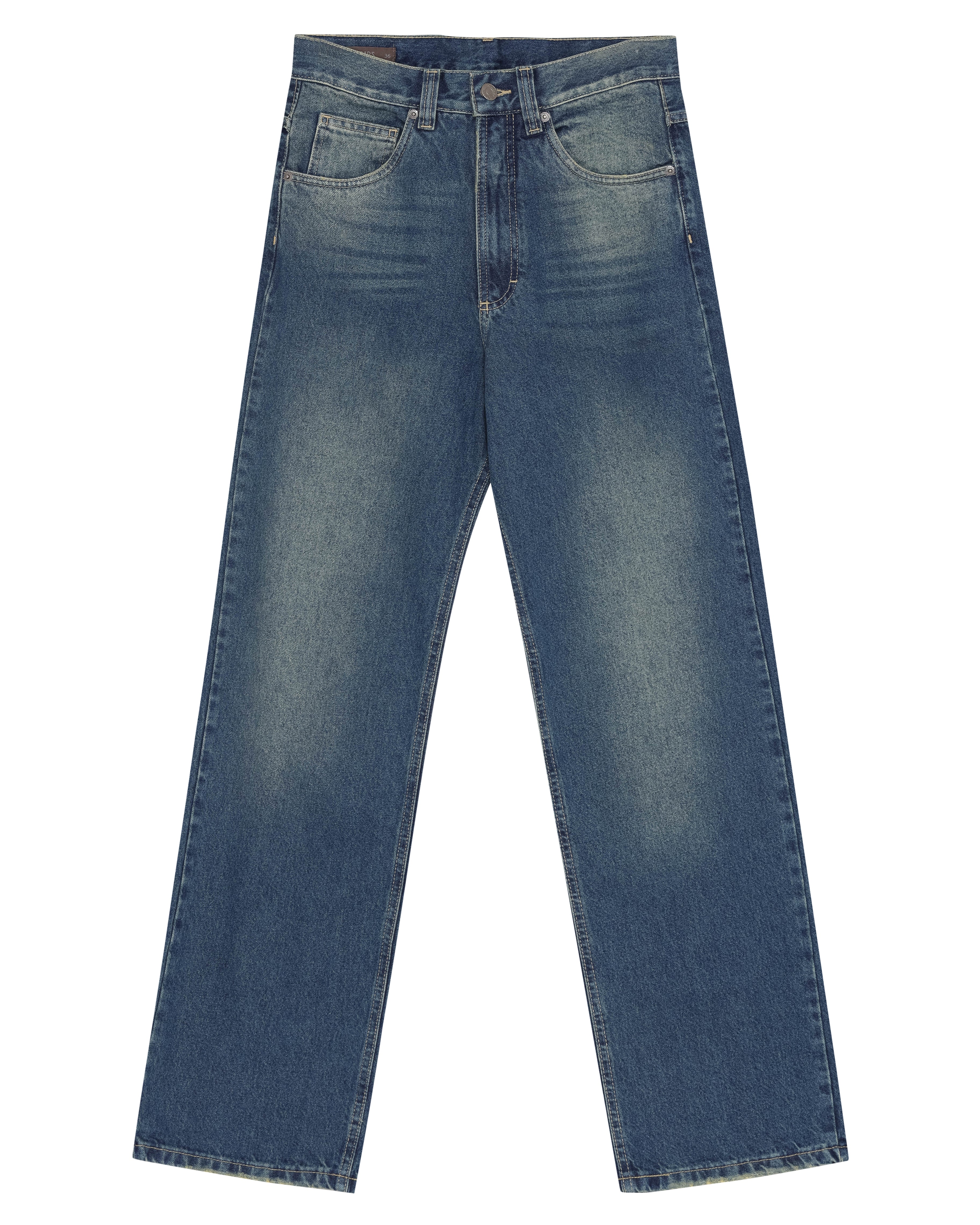 A Calça Jeans Reto é confeccionada em algodão com lavanderia escura e levemente marcada, possui modelagem reta, caimento boyfriend, cós com passantes, fechamento frontal por botão e zíper, cinco bolsos, detalhe logo em relevo nos bolsos traseiros, etiqueta de couro natural produzida com matéria-prima de descarte e acabamento pespontado.
