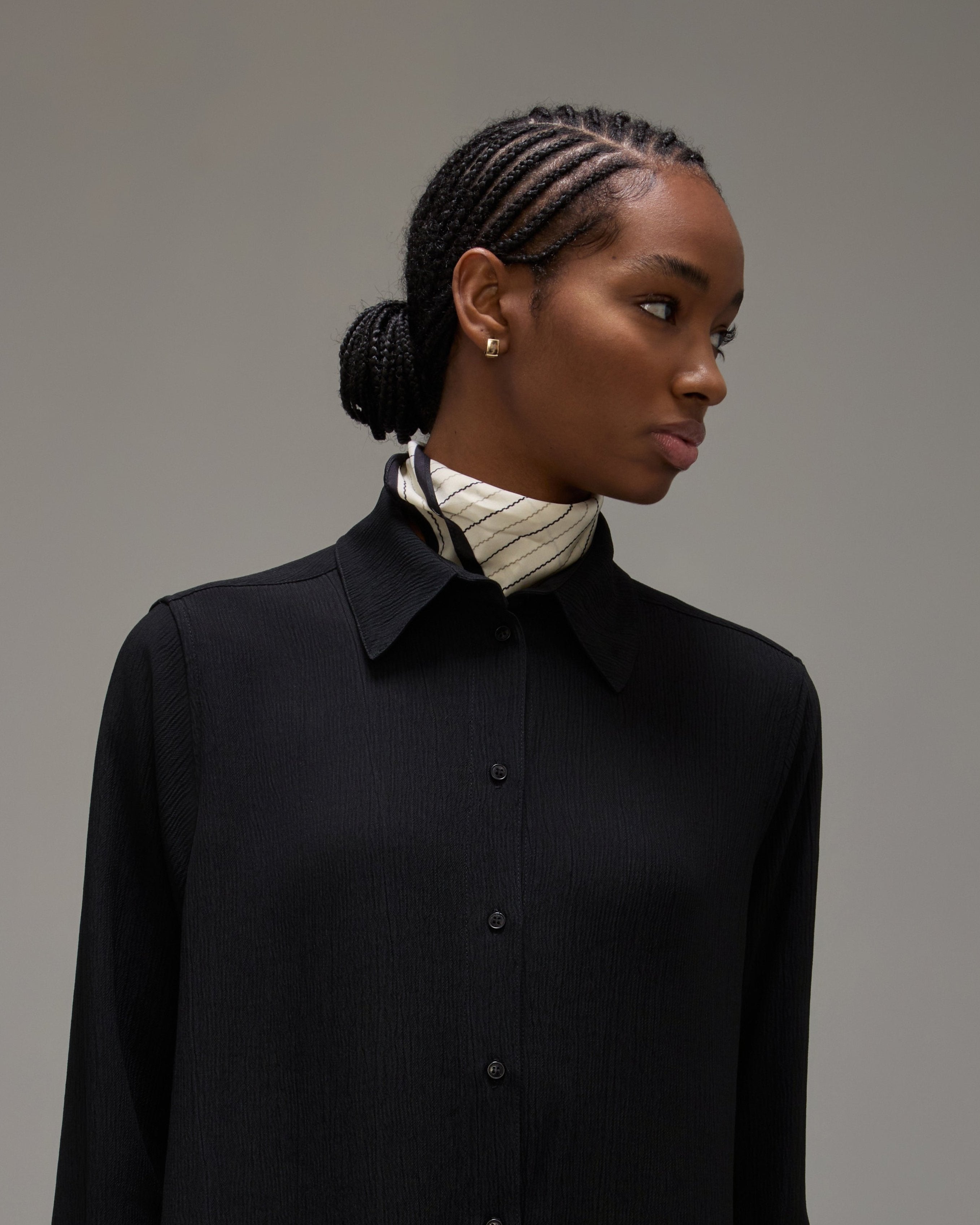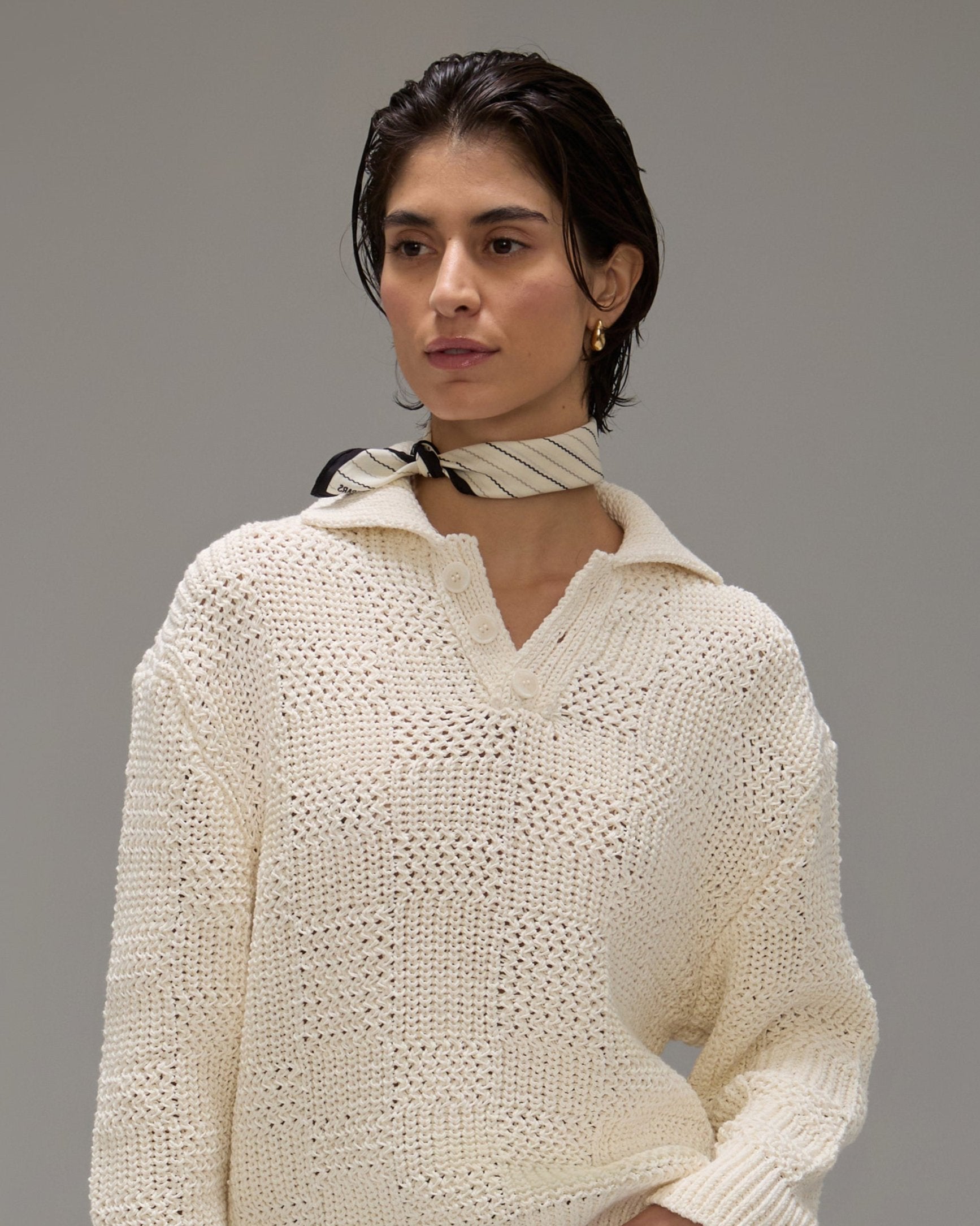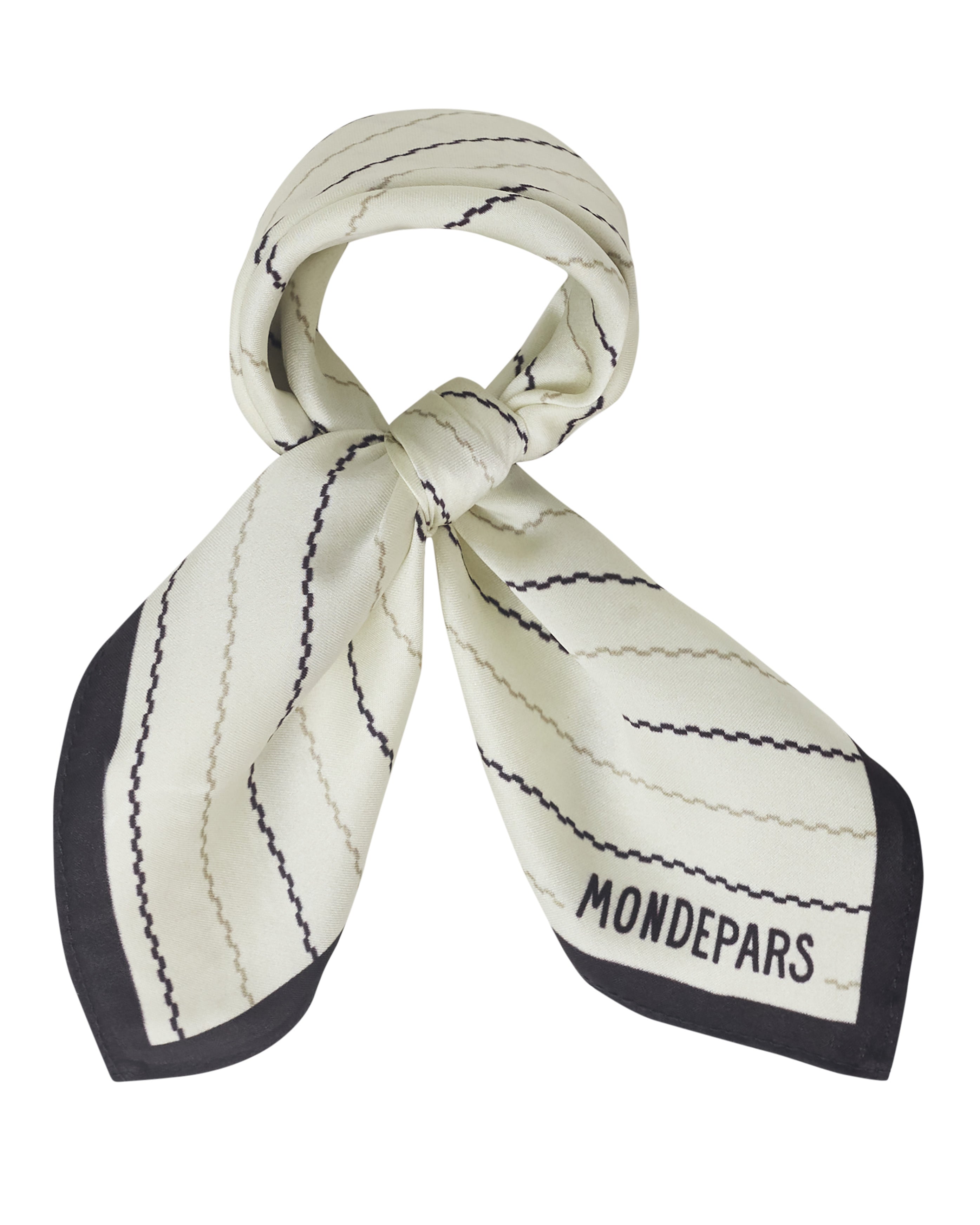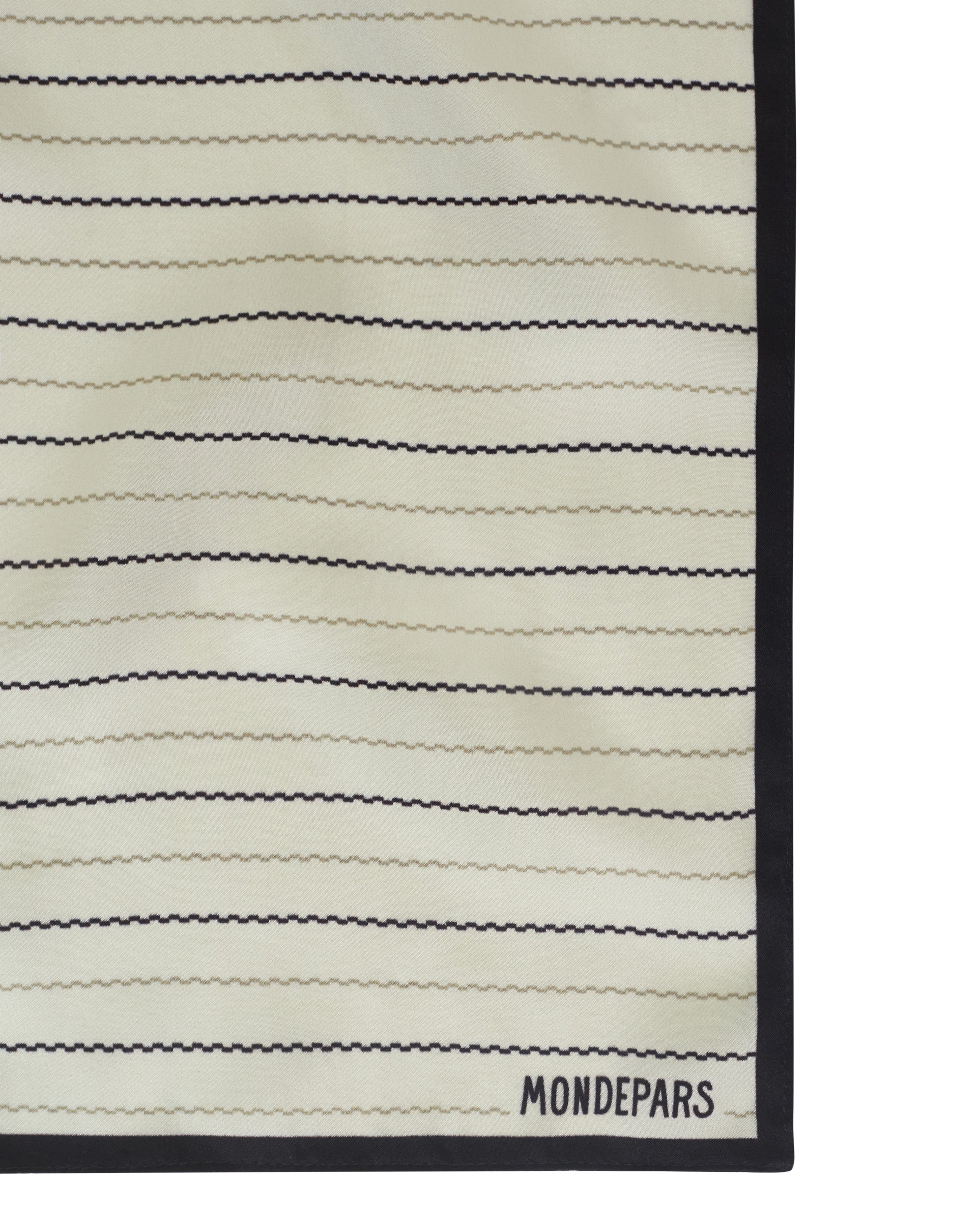 O Lenço Nara é confeccionado em seda, possui estampa exclusiva listrada Mondepars, formato quadrado e acabamento pespontado.