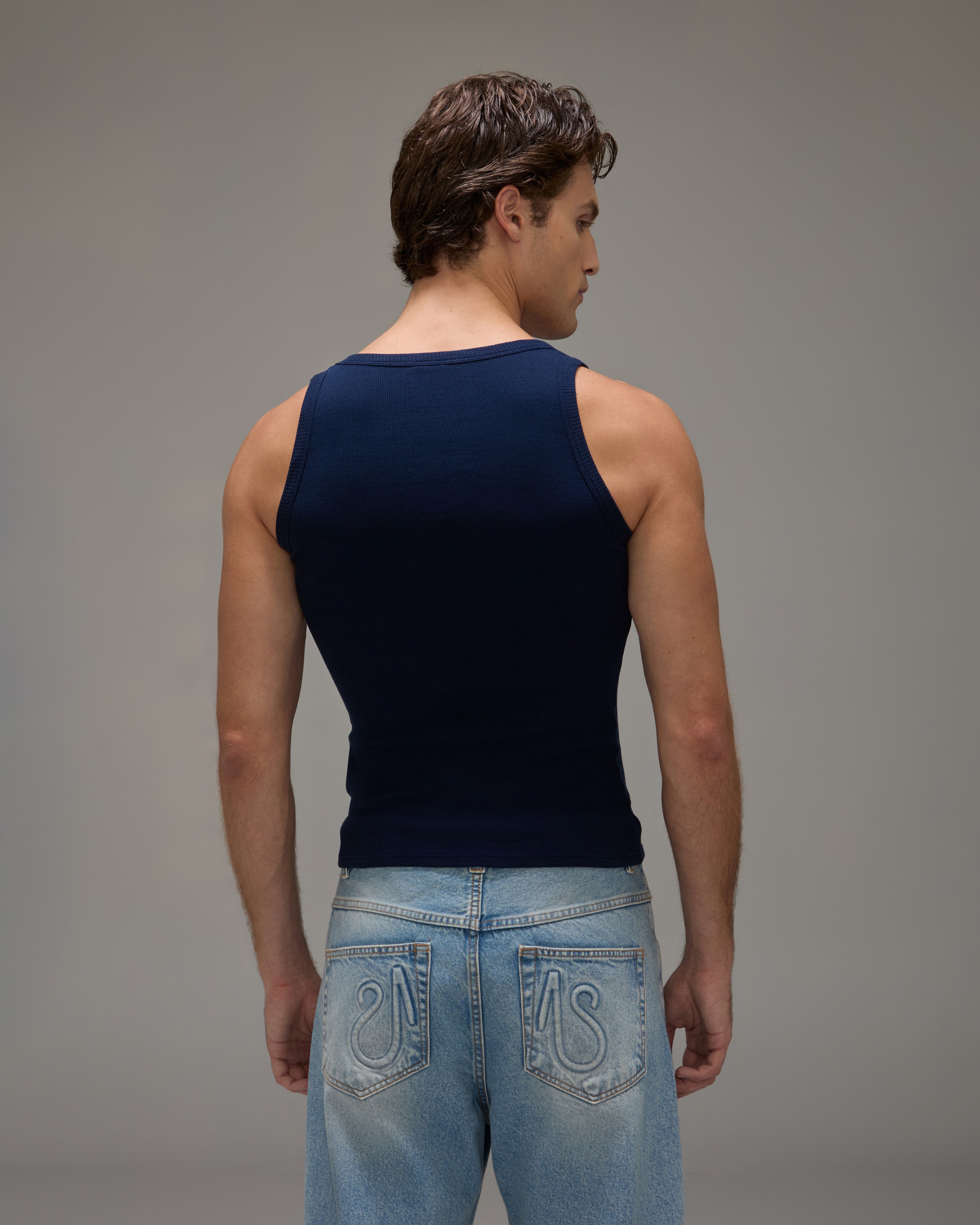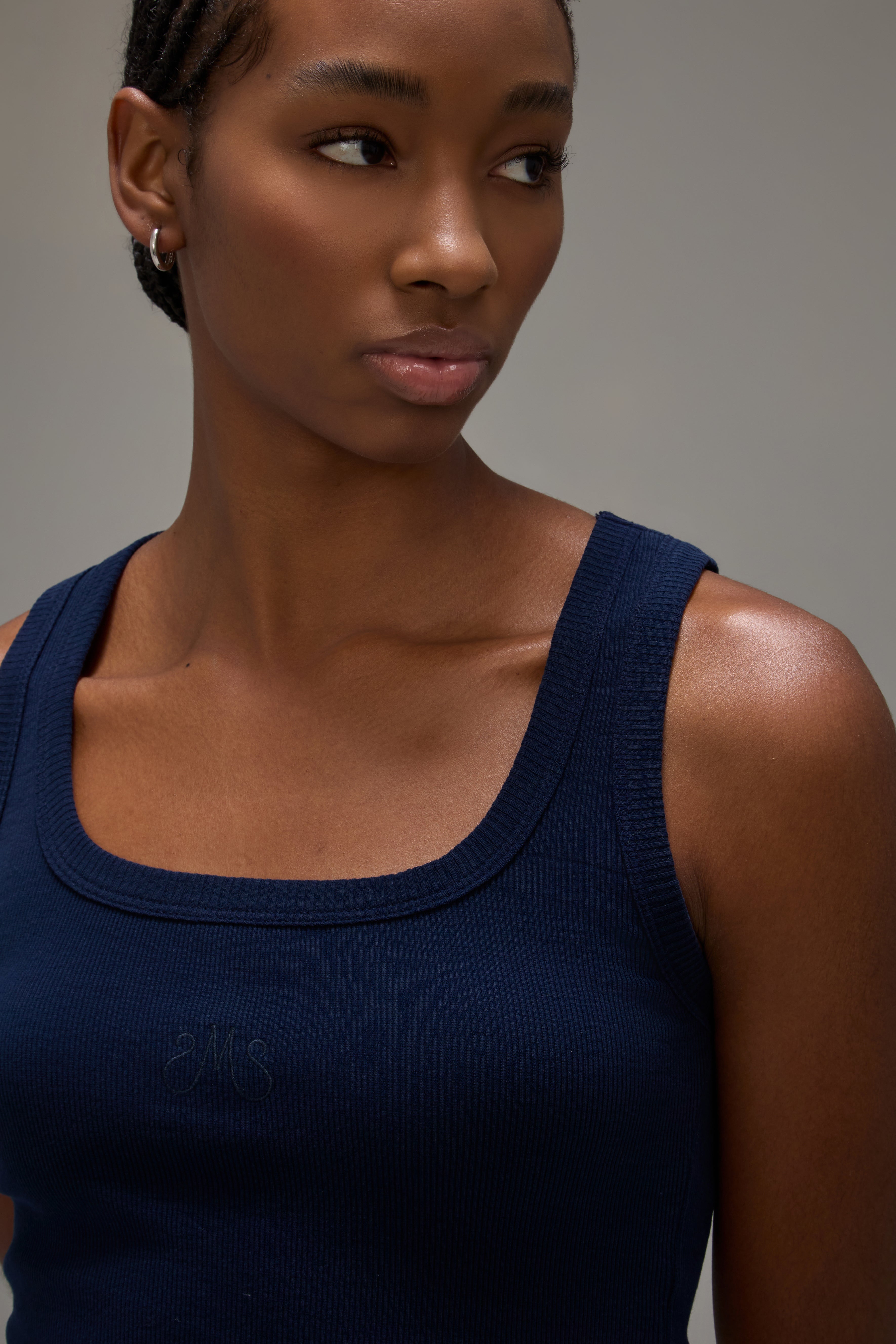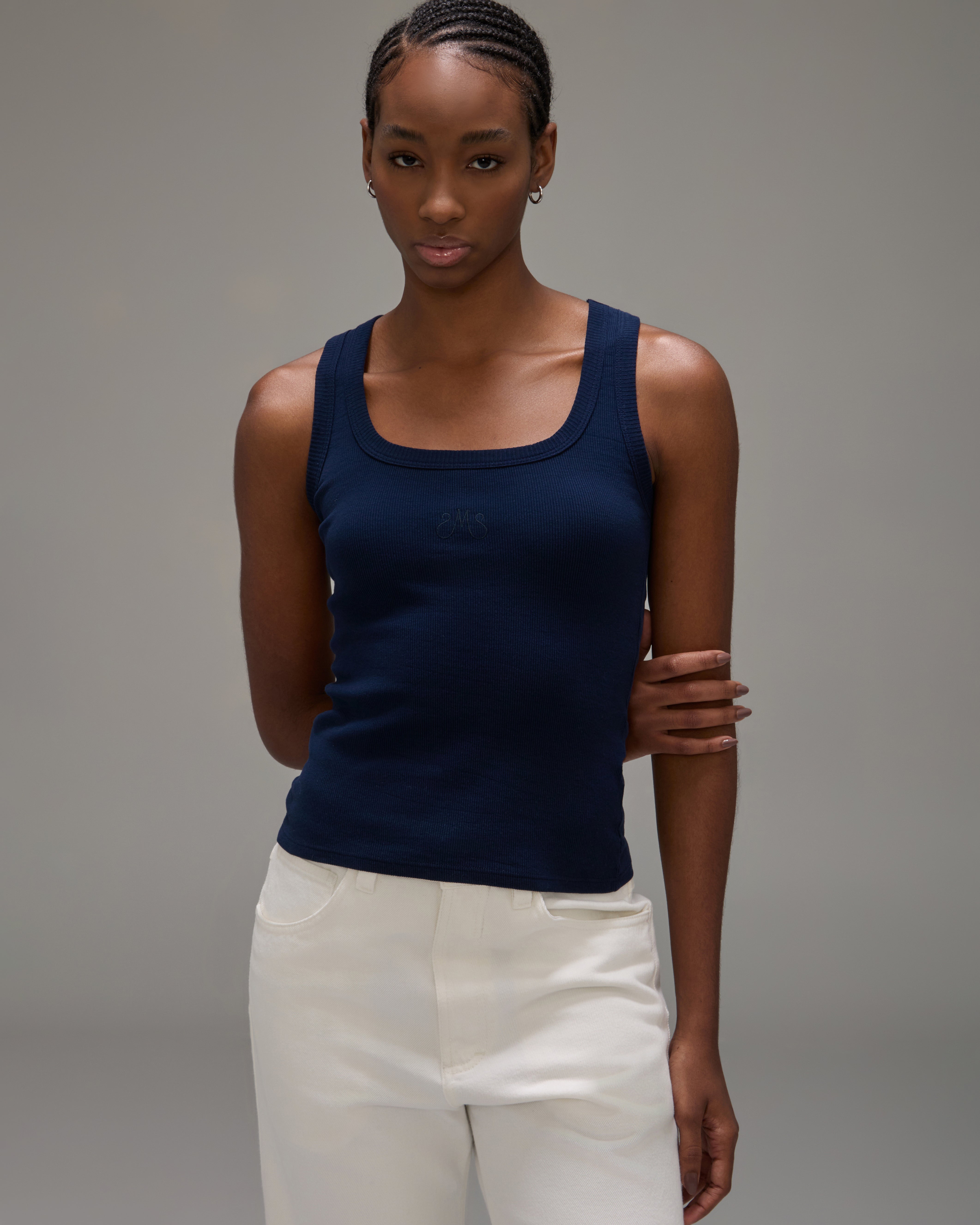 A Regata Arya é confeccionado em malha canelada com lavagem especialmente desenvolvida em lavanderia, possui caimento ajustado, decote quadrado, bordado frontal, alças médias e acabamento pespontado.