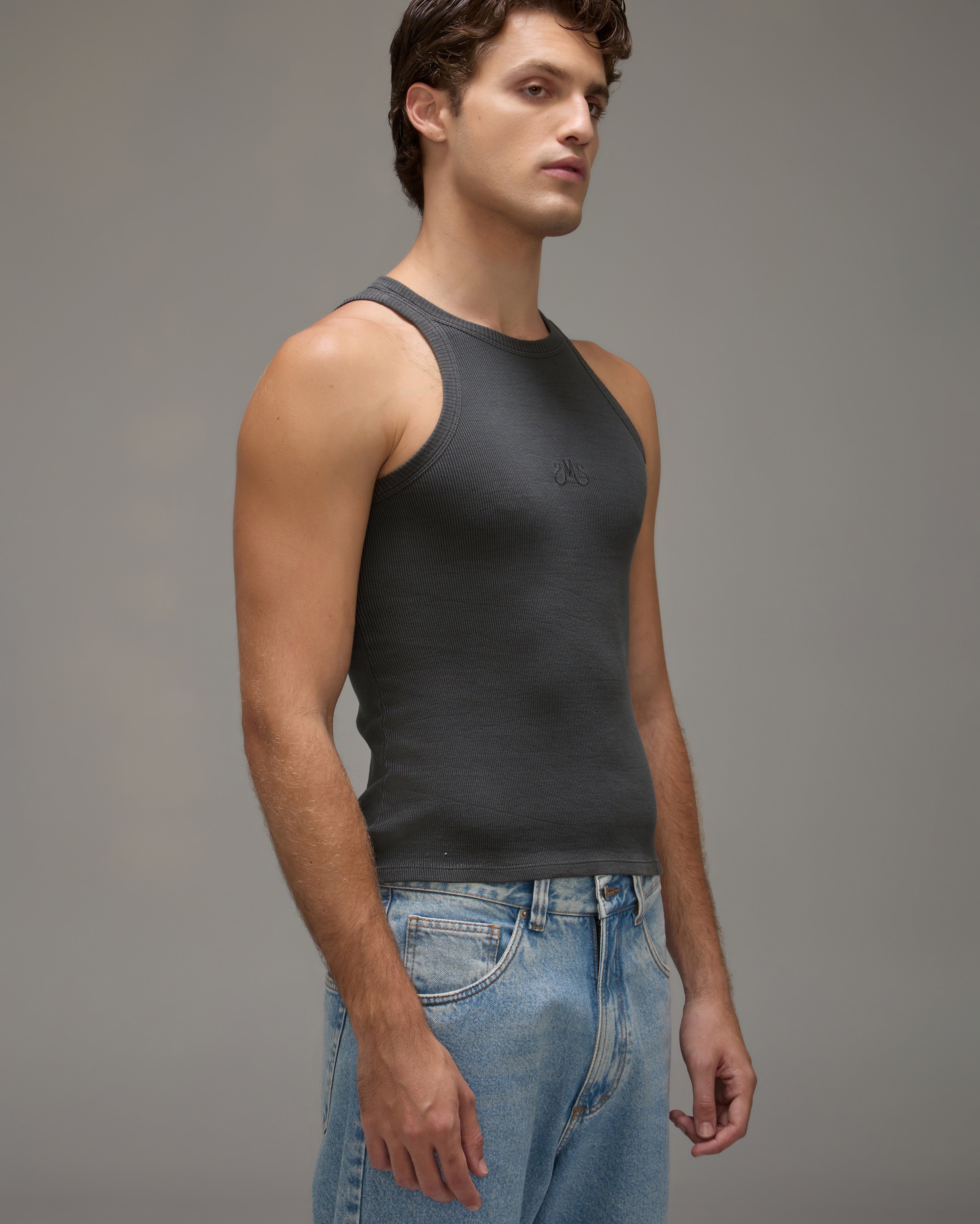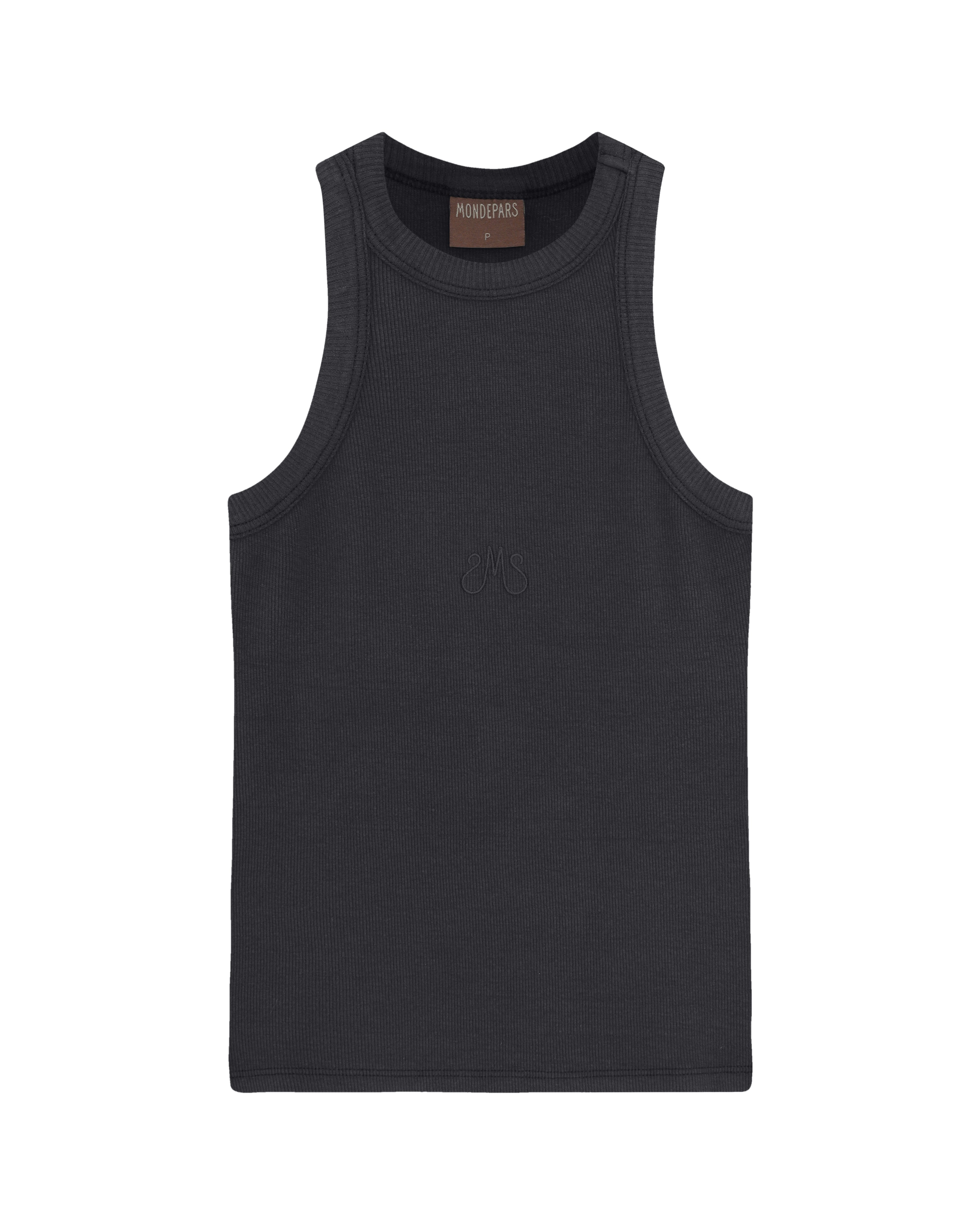 A Regata Mondepars é confeccionada em malha canelada de algodão, com cor especialmente desenvolvida em lavanderia, possui modelo nadador, alças médias, bordado frontal, barra reta e acabamento pespontado.