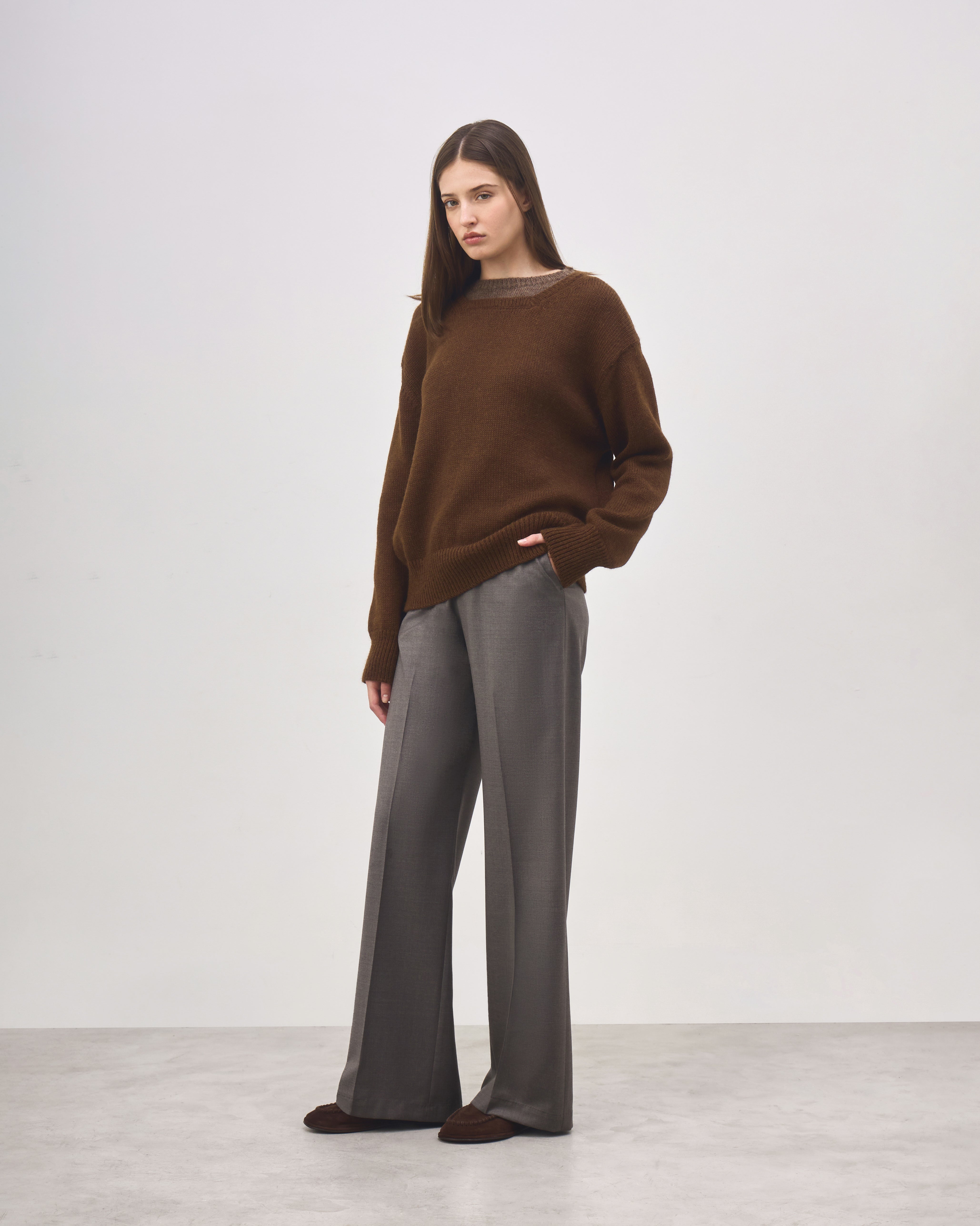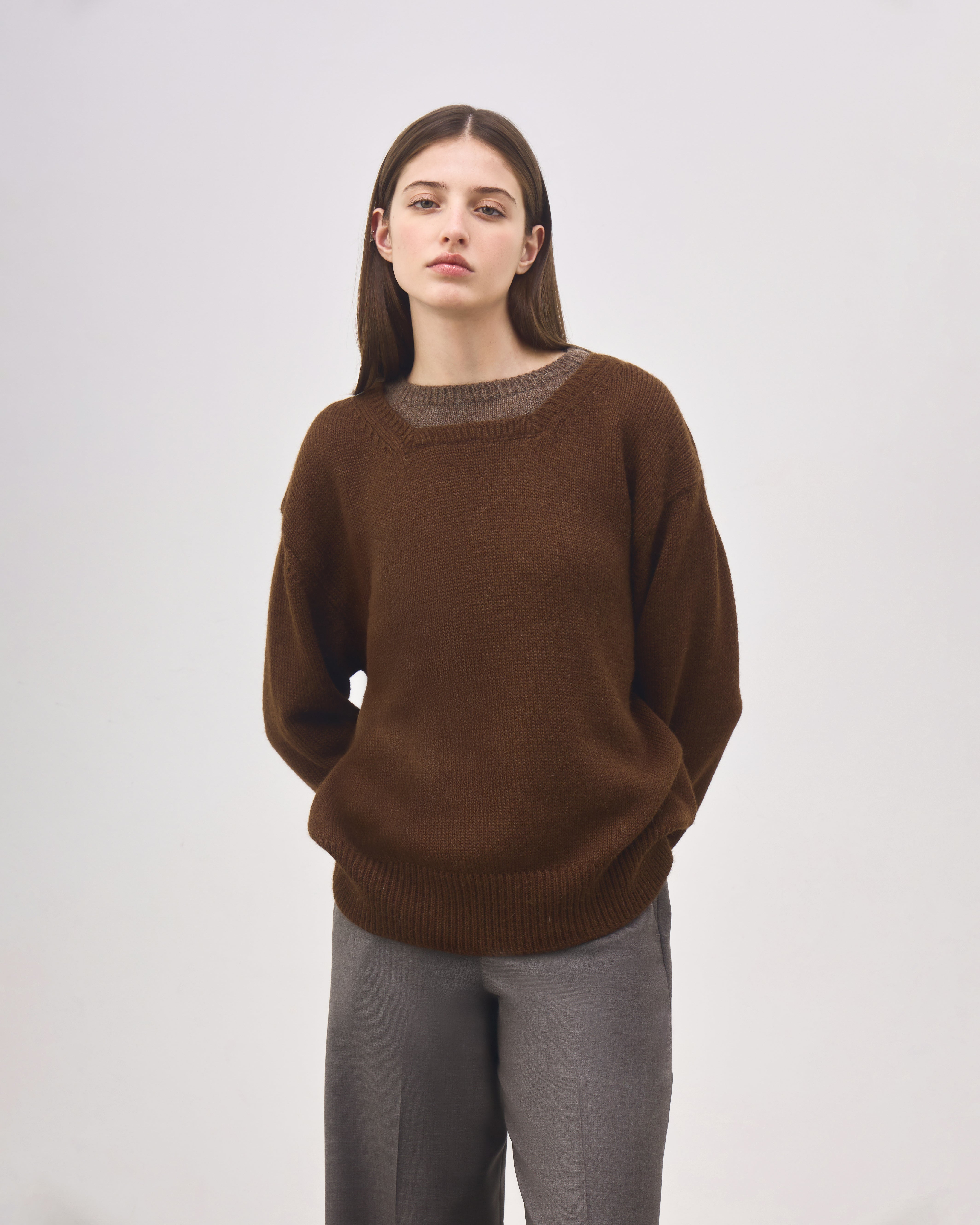 O Sweater Domingos é confeccionado em tricot de lã alpaca com toque macio, possui gola dupla em formato trapézio, adicionando textura e profundidade ao visual, mangas longas, barra reta e acabamento canelado.