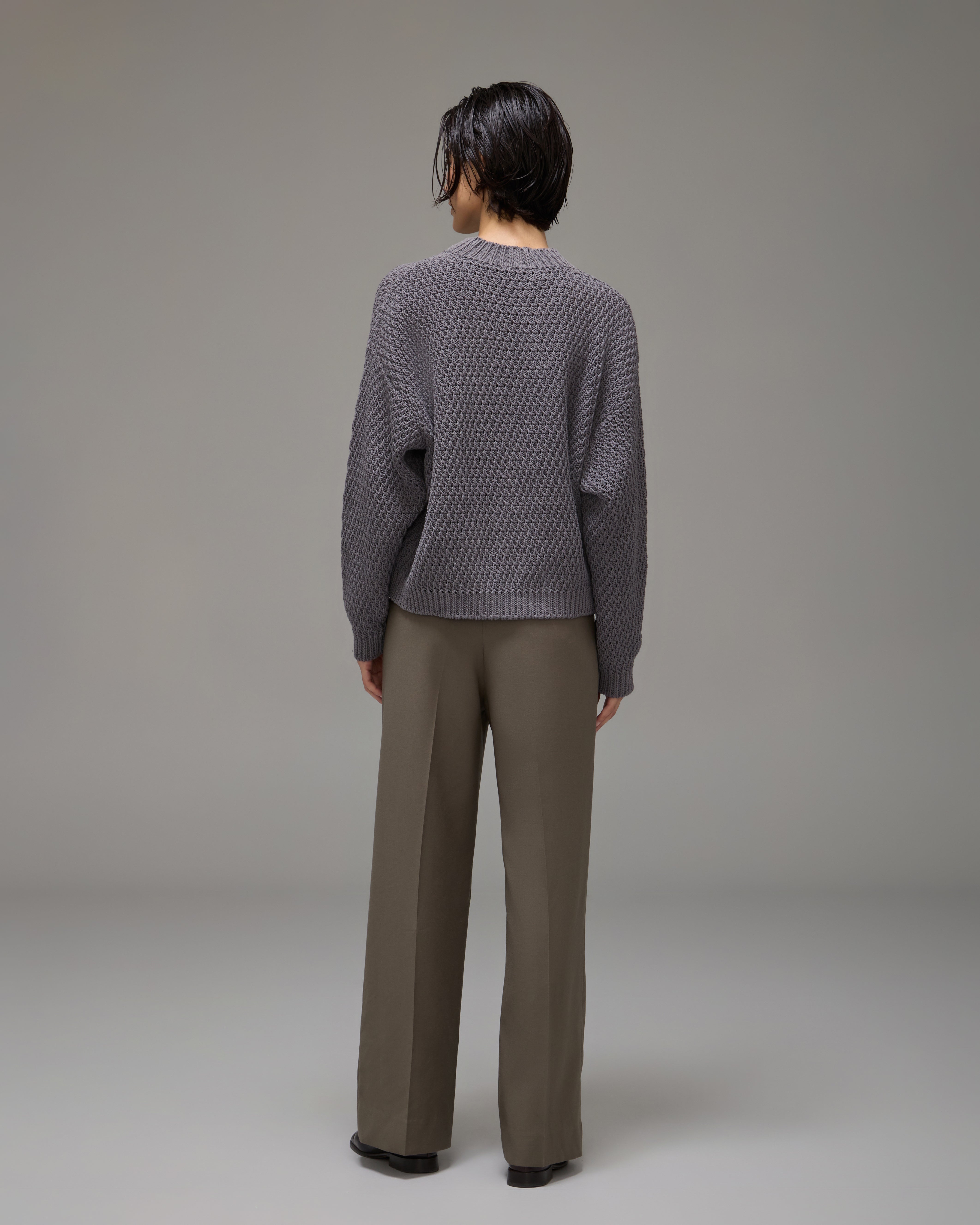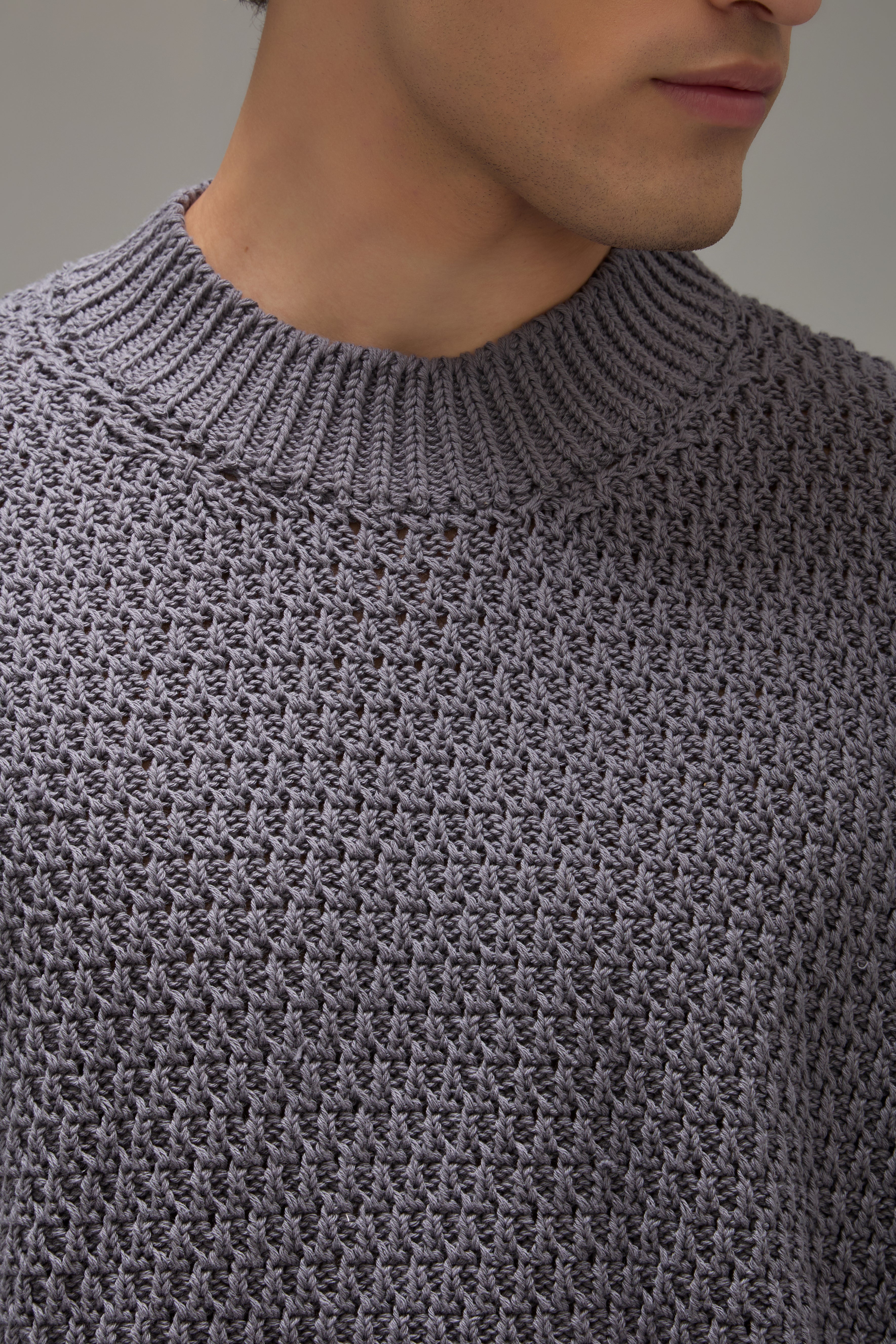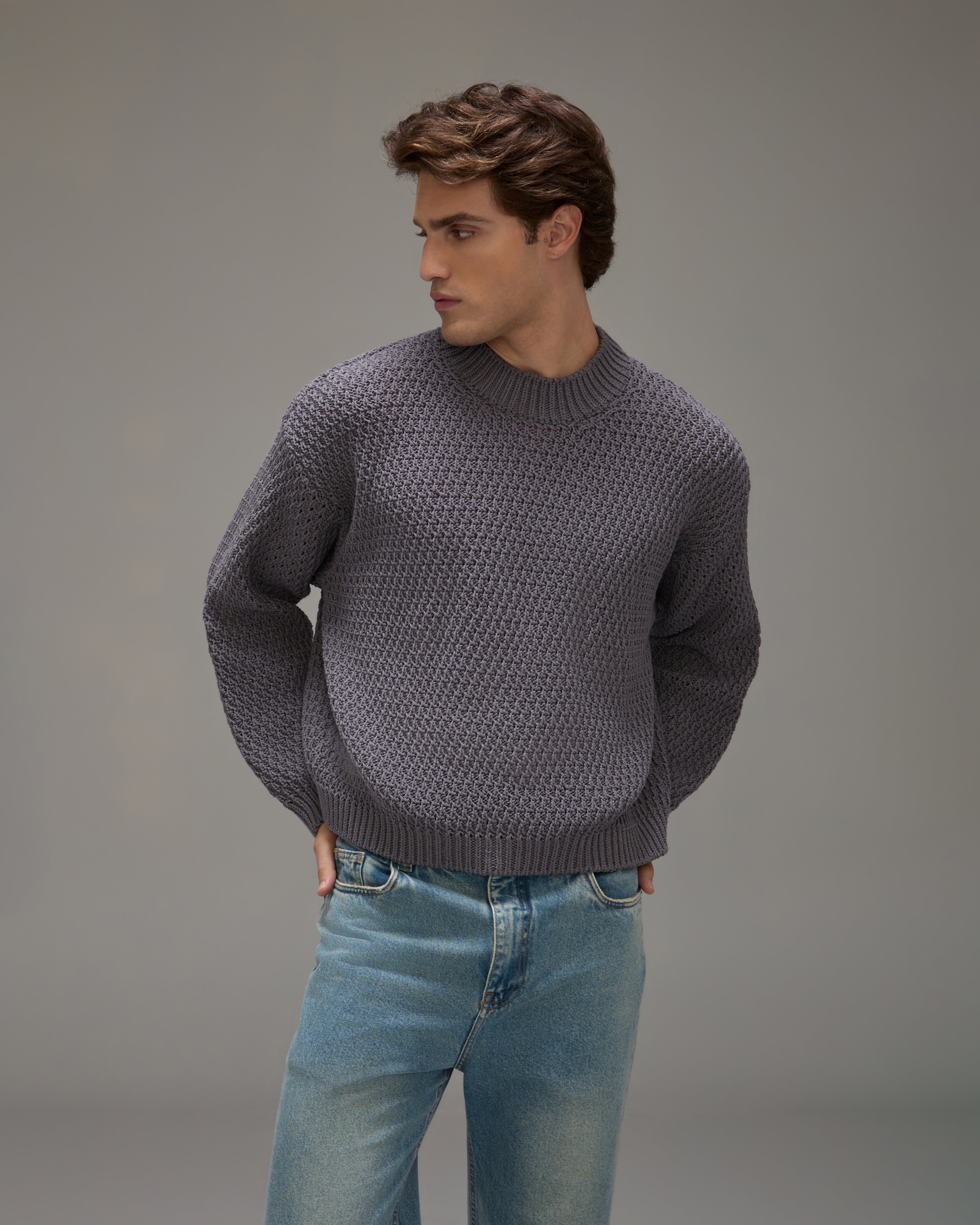 O Sweater Niko confeccionado em tricot com trama especialmente desenvolvida em padronagem encorpada, possui gola, mangas longas, barra reta e acabamento canelado.