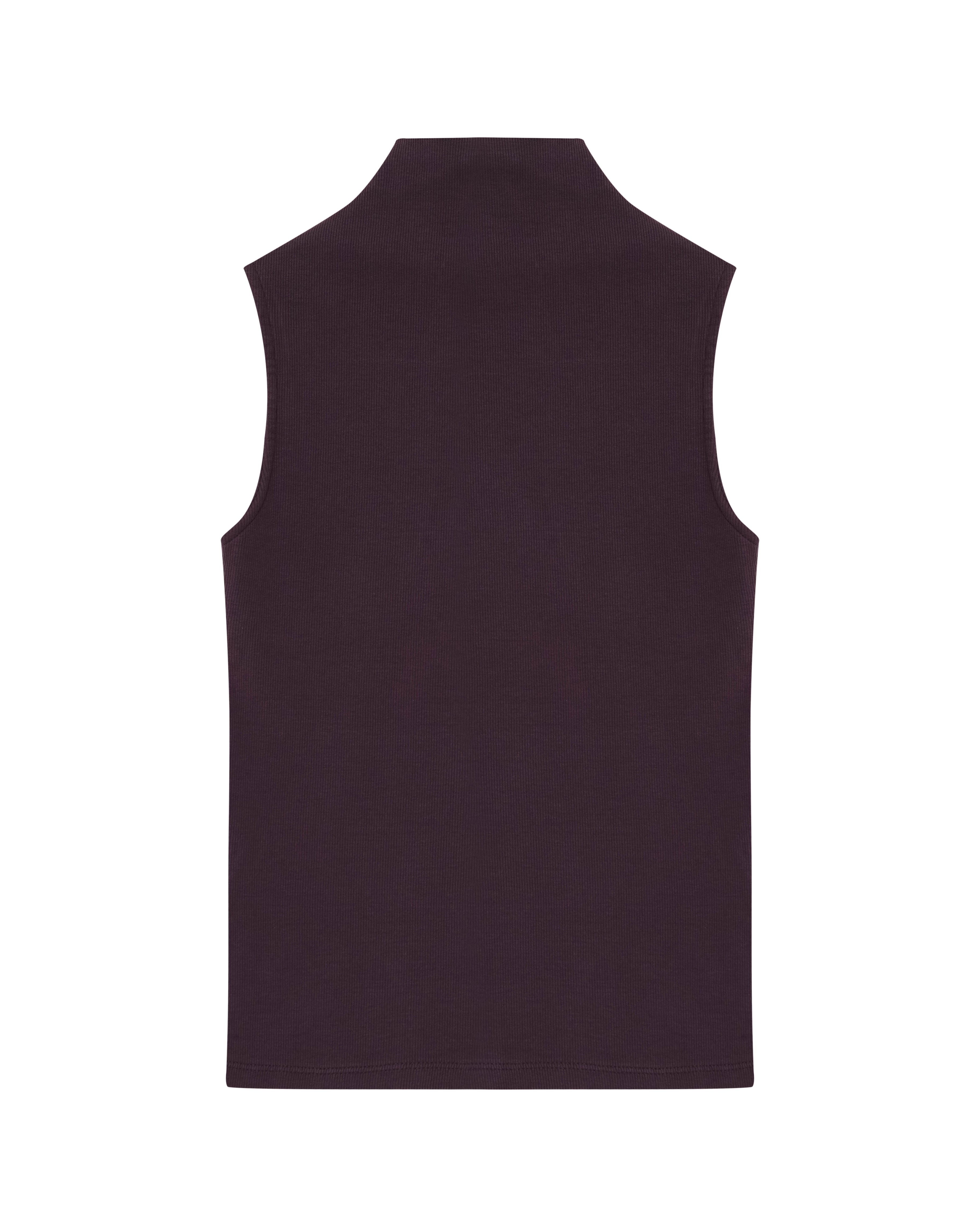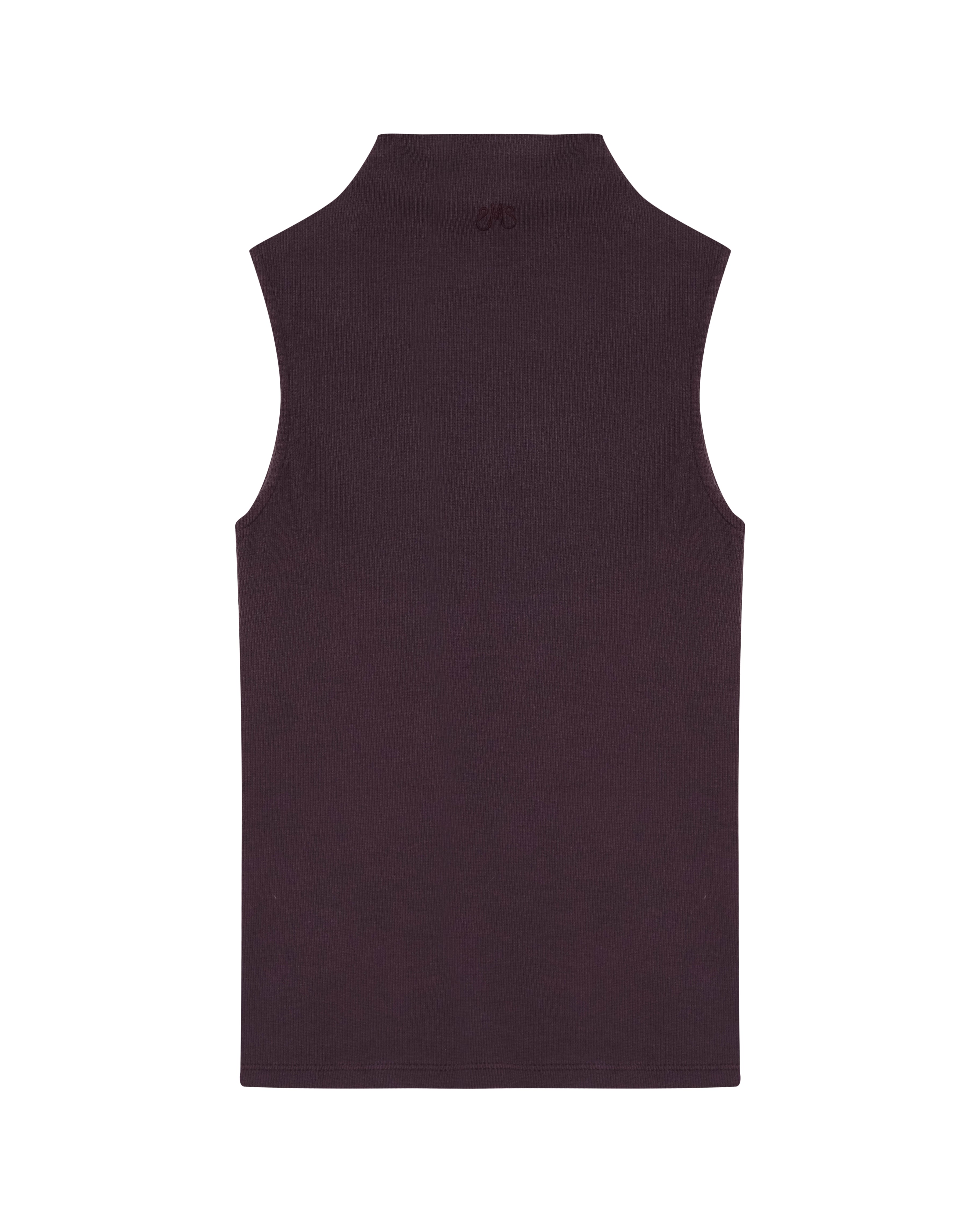 A Regata Ângela é confeccionada em malha canelada, possui caimento ajustado ao corpo, gola alta com logo bordado posterior, alças largas e acabamento pespontado.